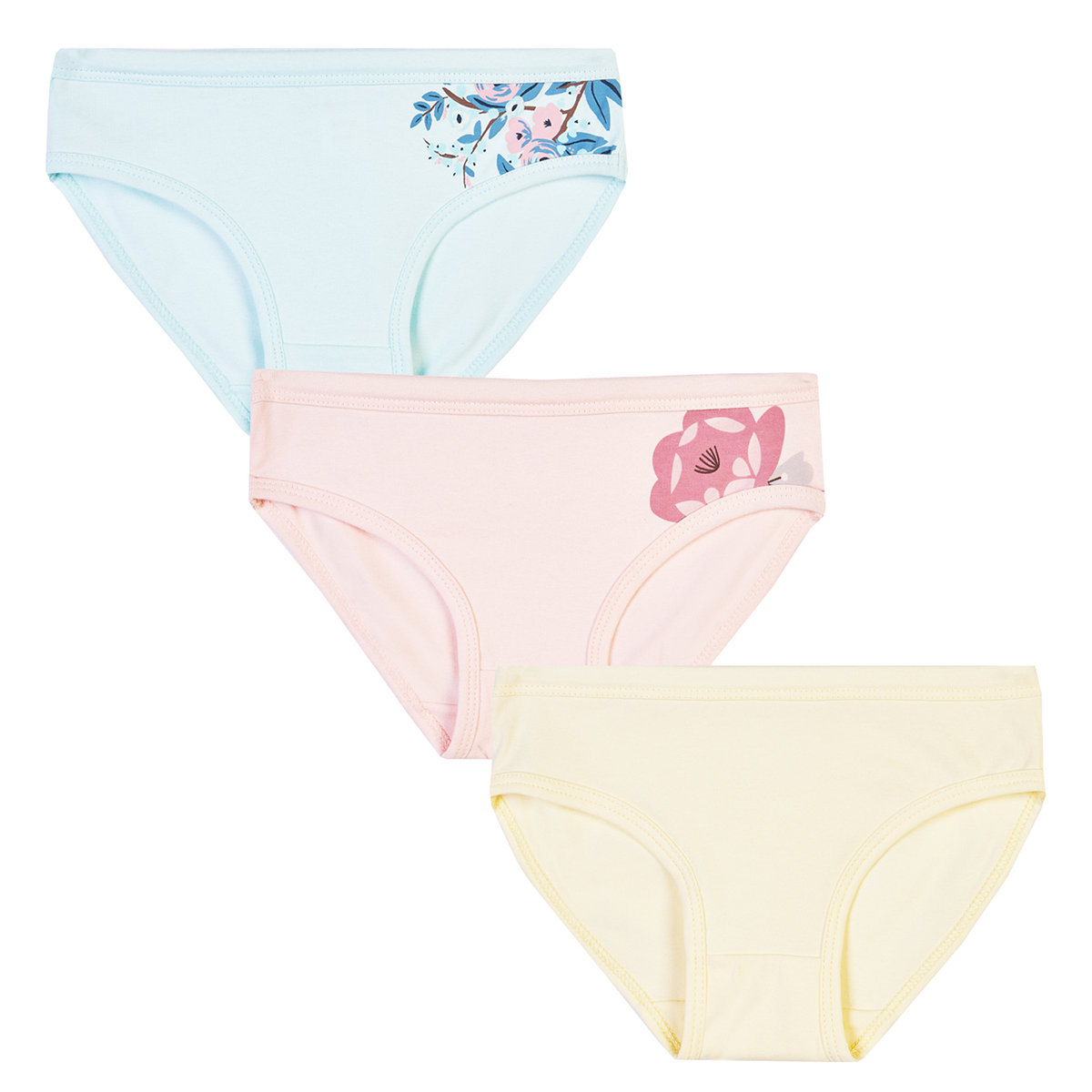 Комплект трусов для девочки, 3 штуки. Выполнены из эластичного хлопкового полотна, обеспечивают хорошее прилегание по фигуре, очень удобны и практичны, прекрасно подойдут как повседневный вариант.