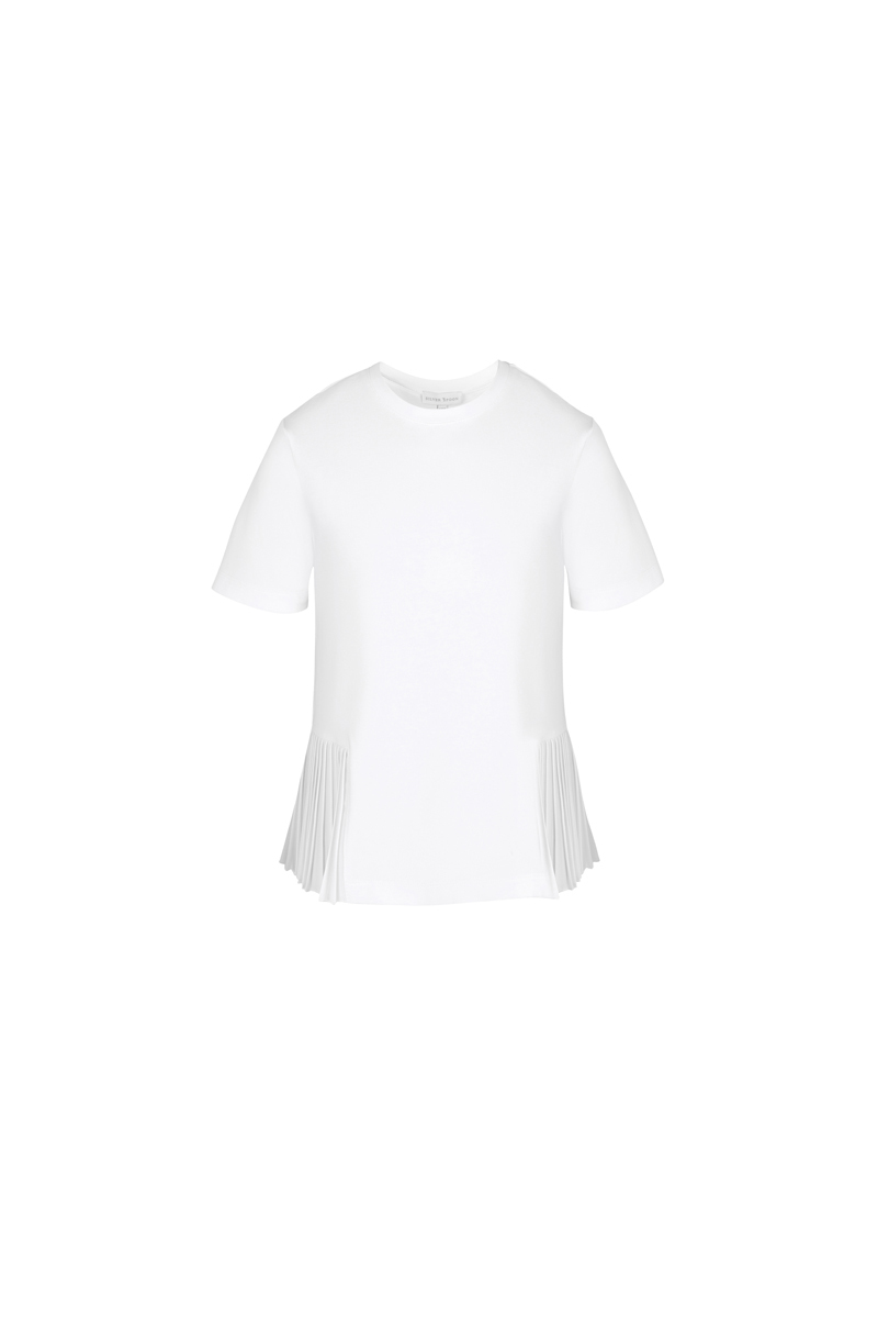 Ткань: кулирная гладь, сатин; Прямой силуэт; Спинка с баской из сатина-плиссе в тон