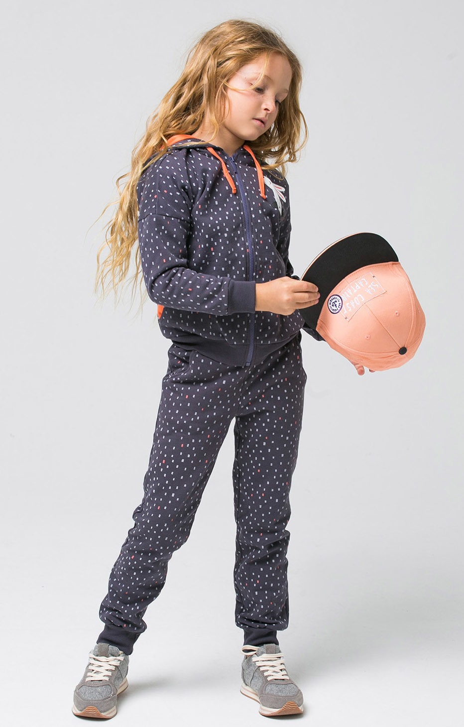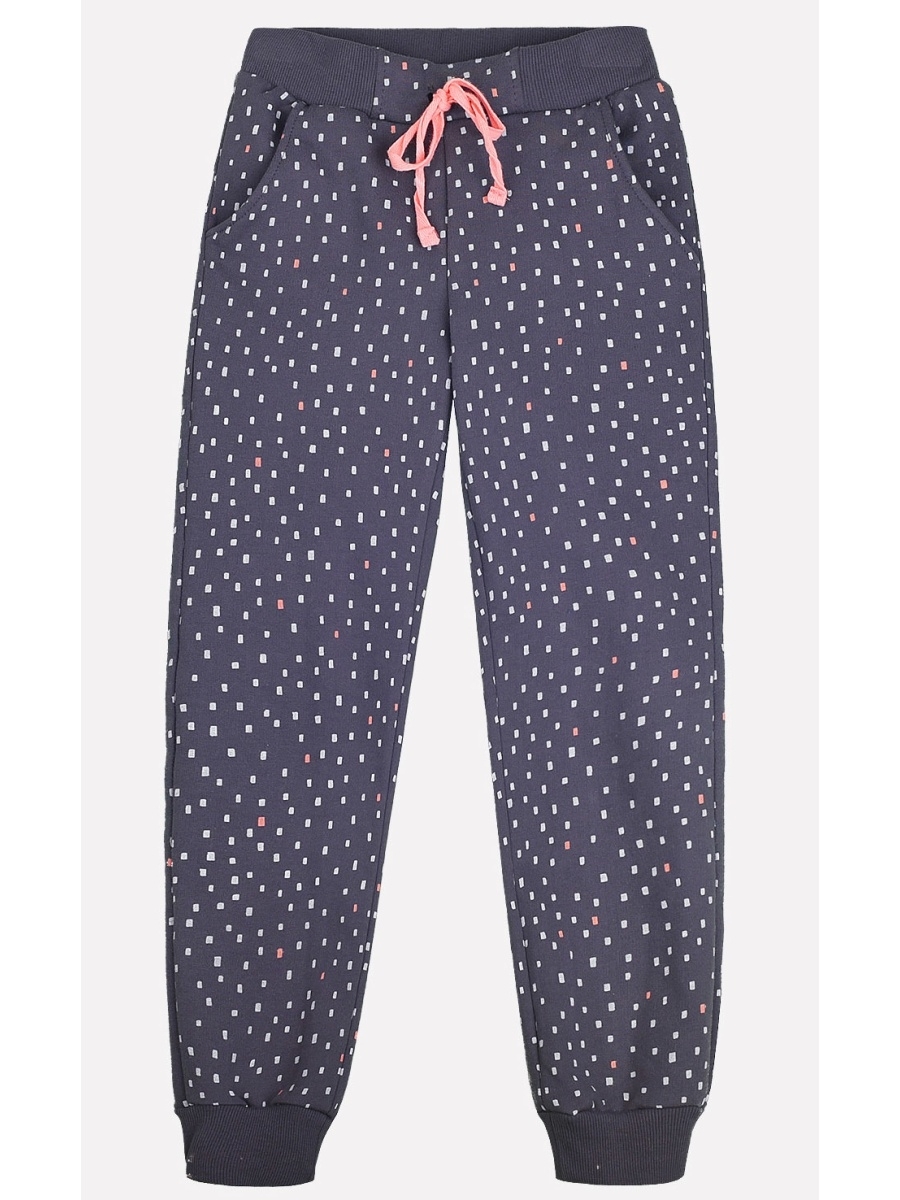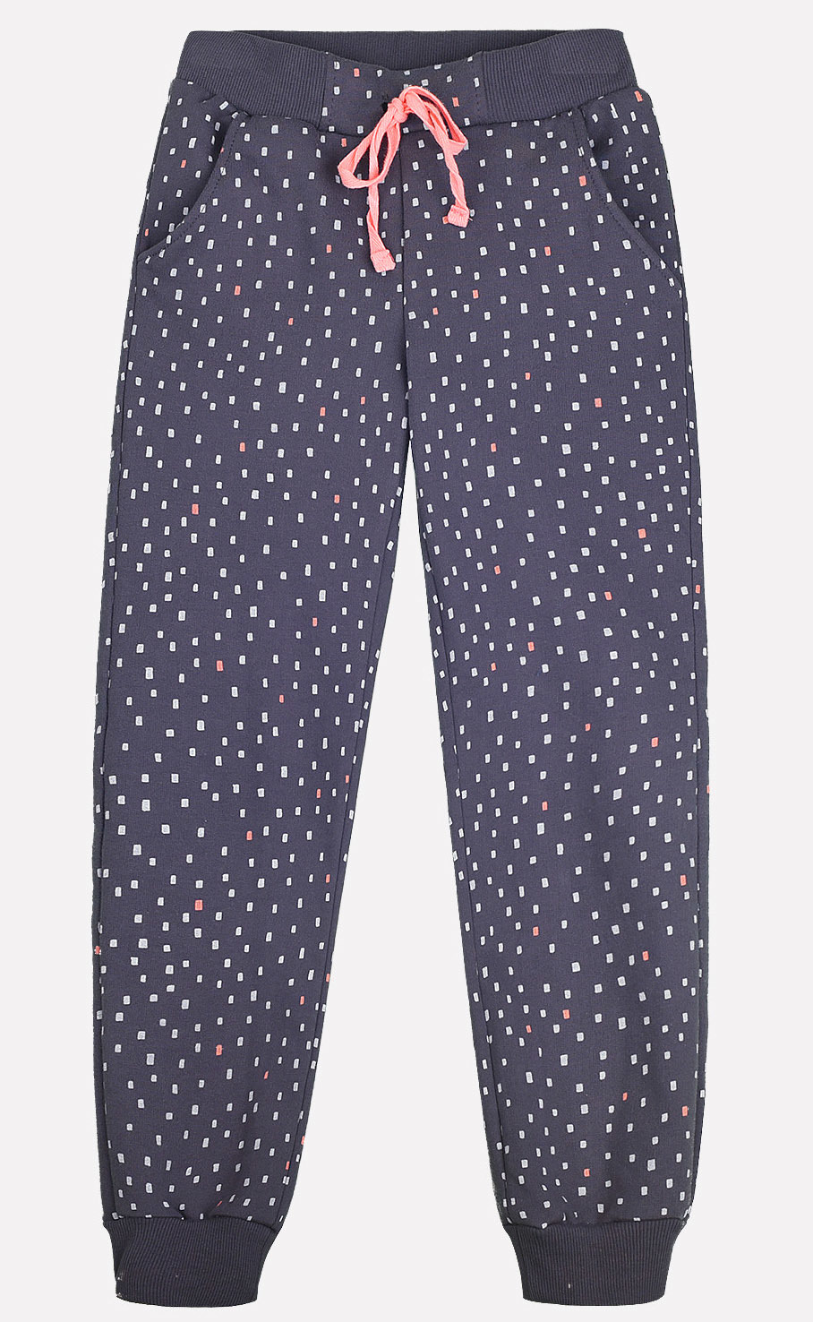 Брюки для девочки из футера с начесом. Рельефные манжеты и пояс выполнены из трикотажного хлопка. В поясе эластичная резинка и лента. Внутренние боковые карманы.