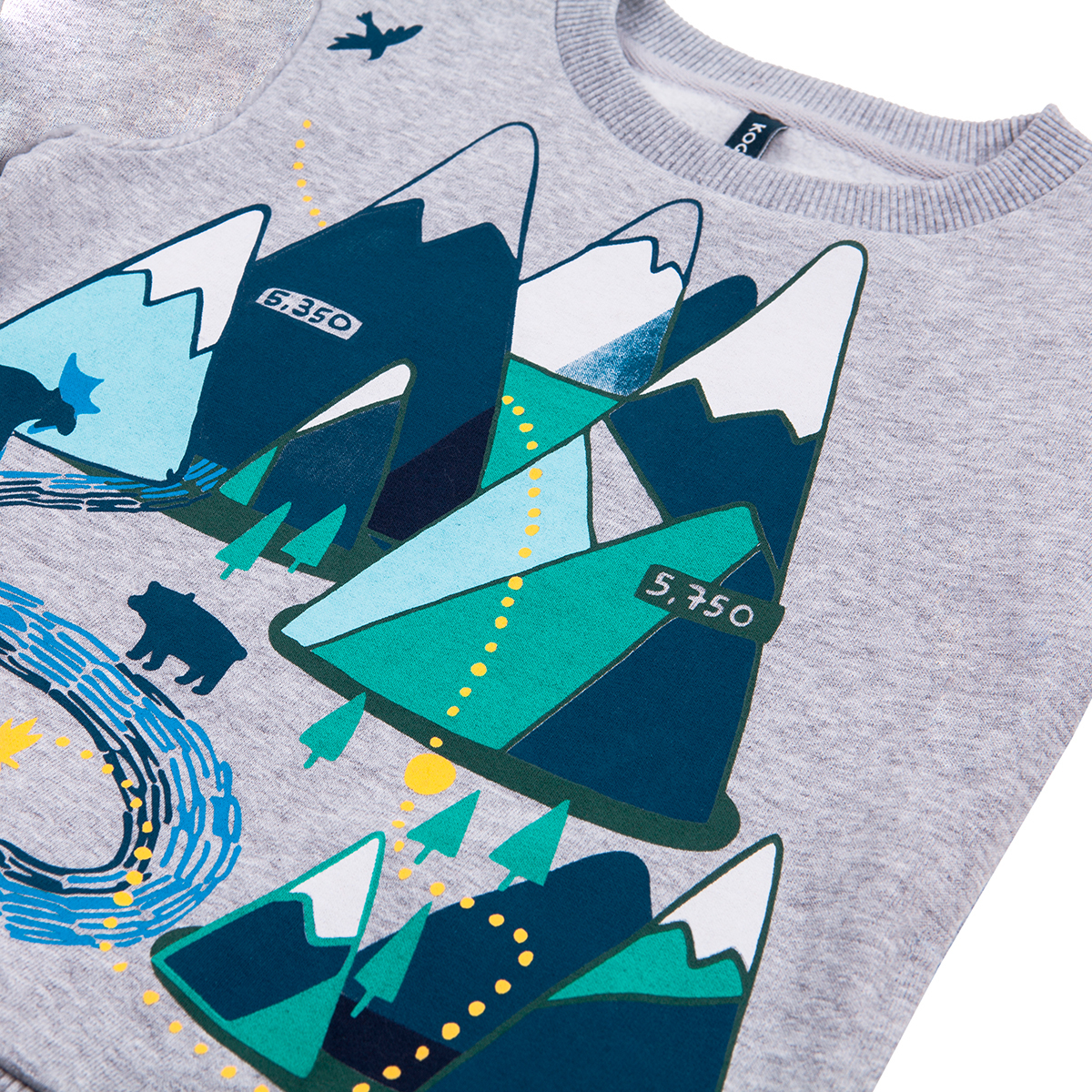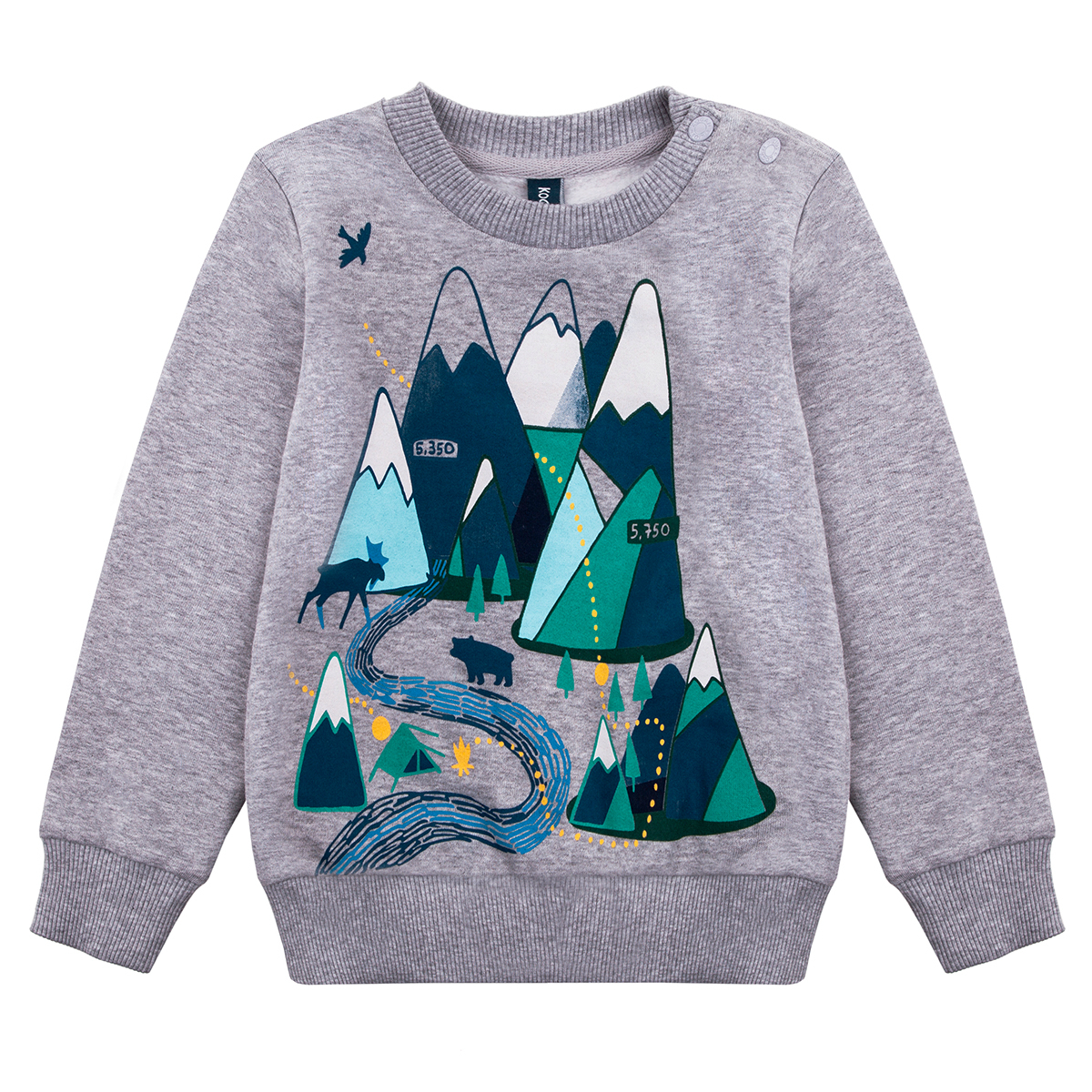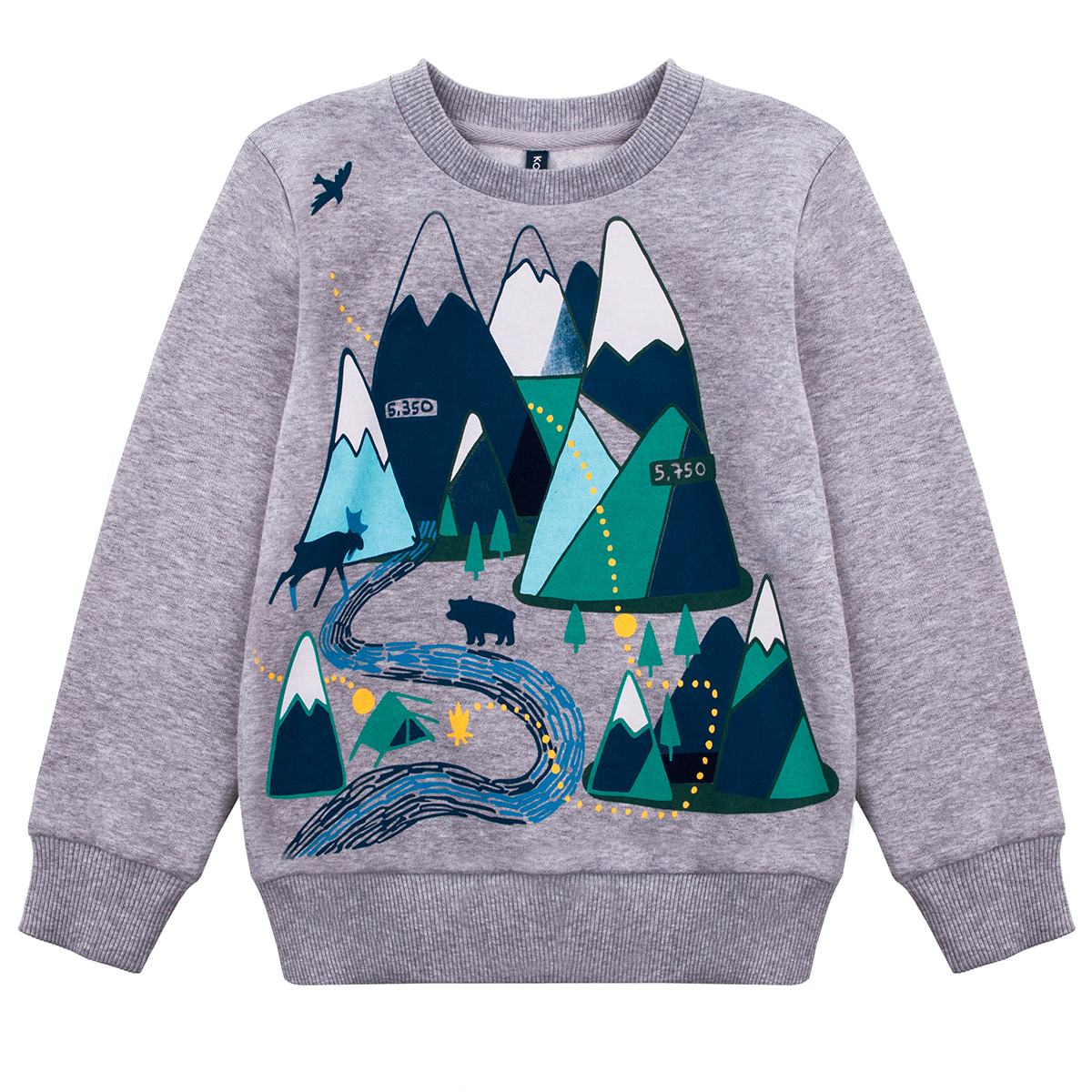 Джемпер для мальчика из меланжевого футера с начесом. Украшен принтом, выполненным на водной основе, сохраняет яркость и стойкость после многочисленных стирок. По бокам есть карманы.Для маленьких размеров 80-98 предусмотрена плечевая застежка на кнопки для удобства одевания.