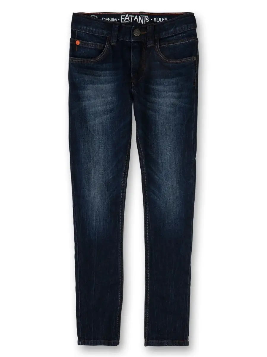 Темно-синие джинсы скинни Eat Ants by Sanetta для мальчика. Пояс с регулировкой. Модель рассчитана на стройное телосложение. Уход: машинная стирка при 40°С в обычном режиме. Не отбеливать. Утюжка при 150°С. Произведено в Европе.