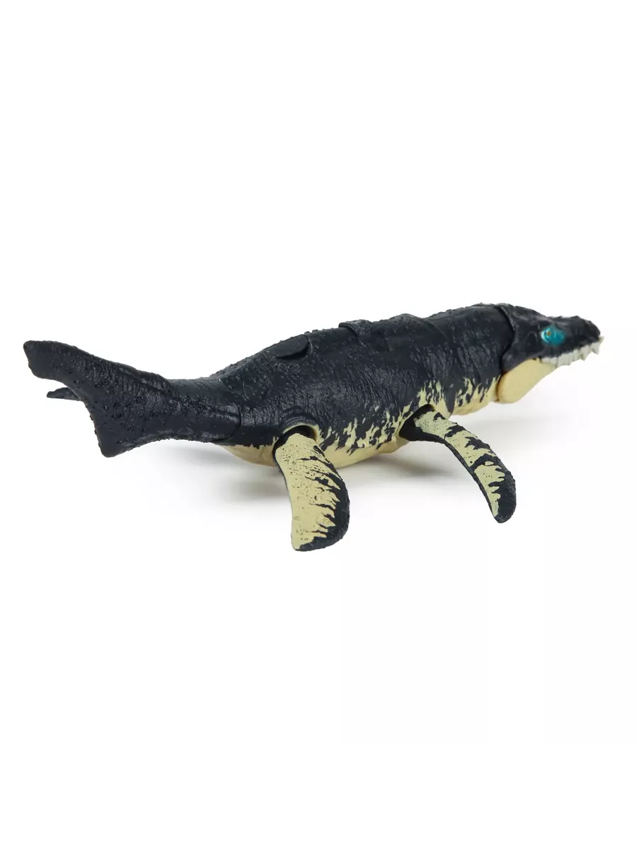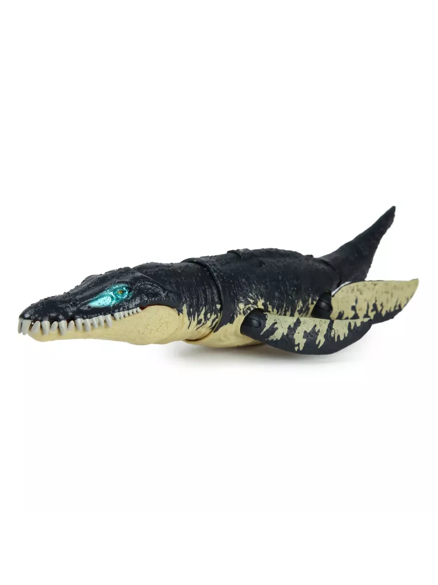 Ужасающие динозавры могут встретиться не только на суше! Познакомьтесь с Кронозавром Jurassic World и испытайте его внезапную атаку.