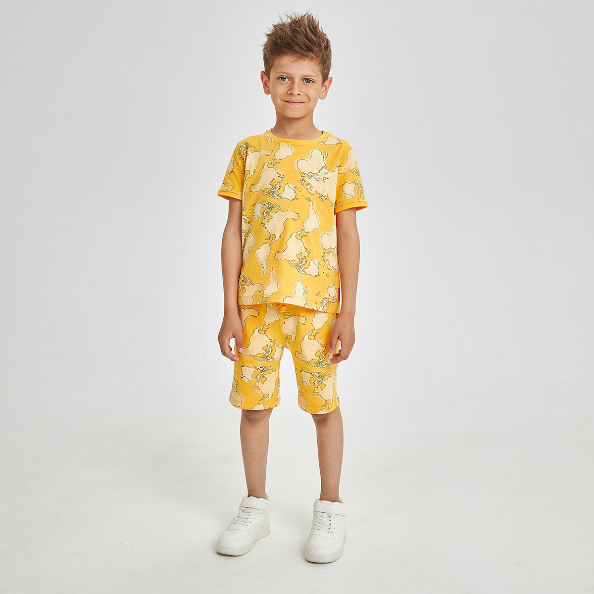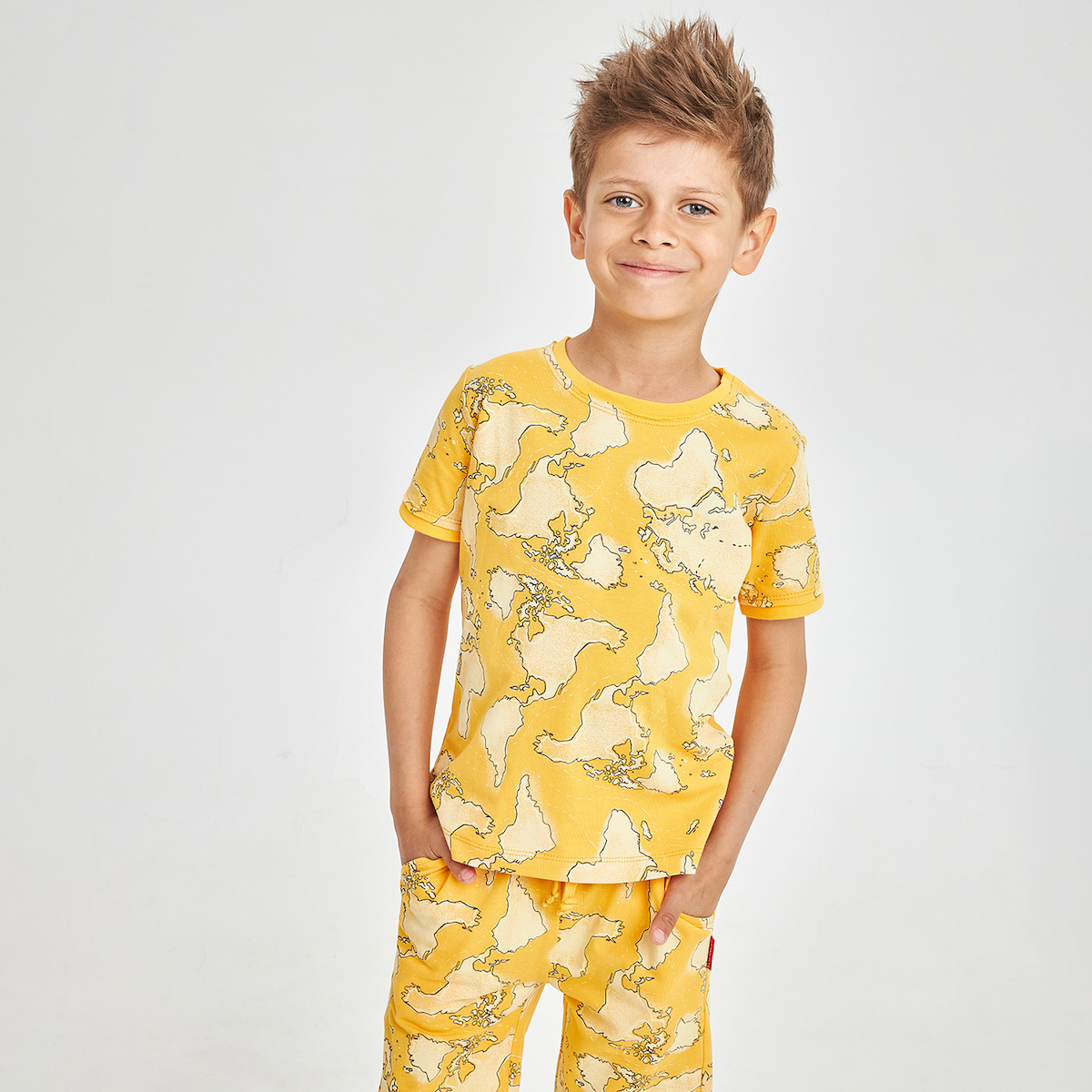Футболка для мальчика с принтом "карта"выполнена из натурального хлопка. Приятный на ощупь трикотаж обеспечит комфорт ребенку во время летних прогулок. Рисунок нанесен водными красками, его можно гладить утюгом. Спинка футболки без рисунка.