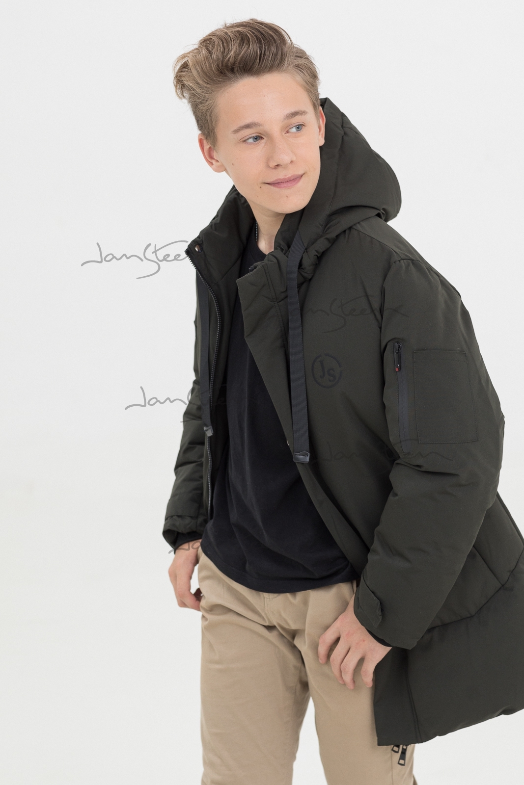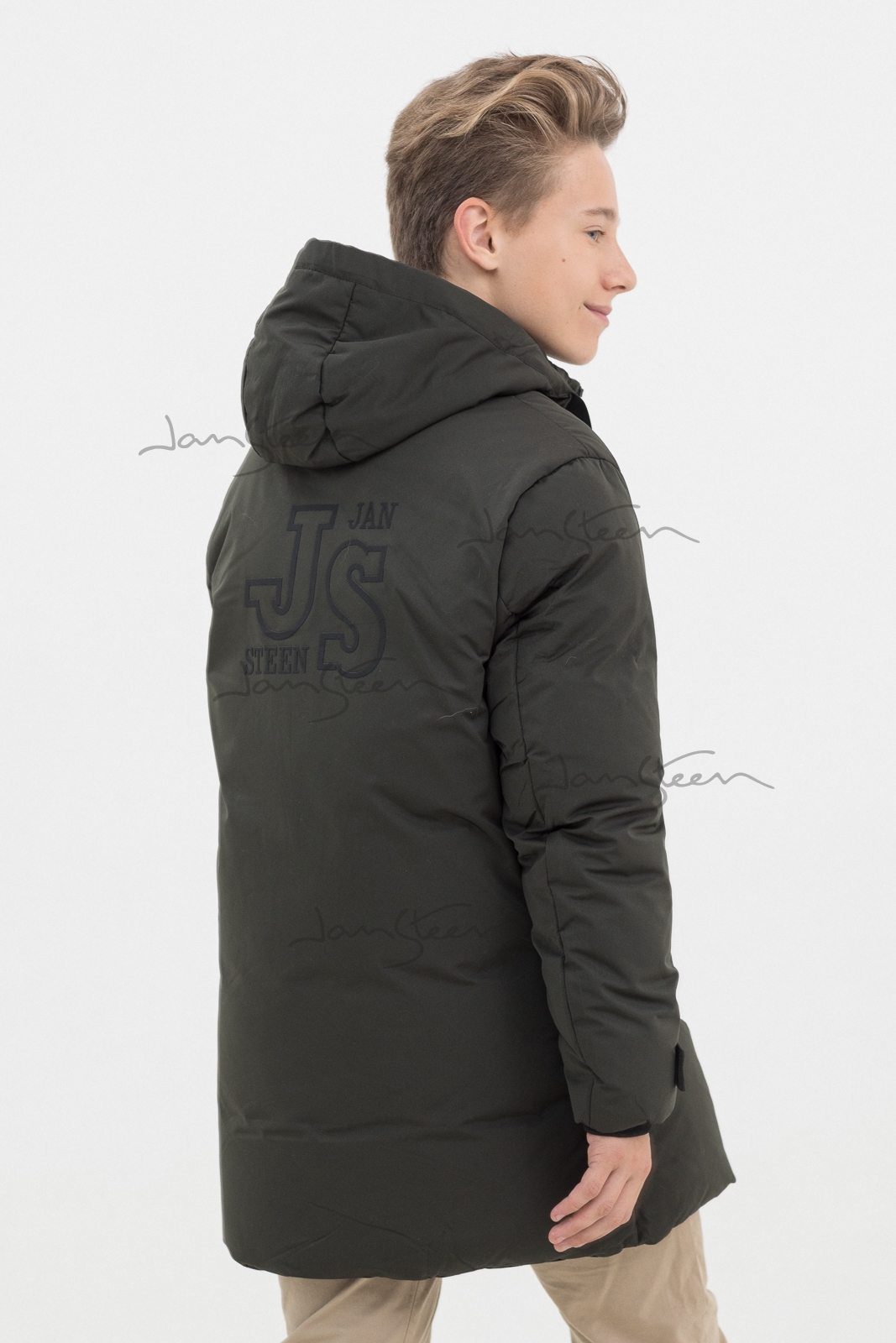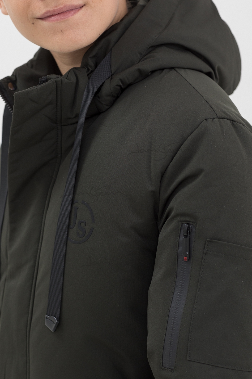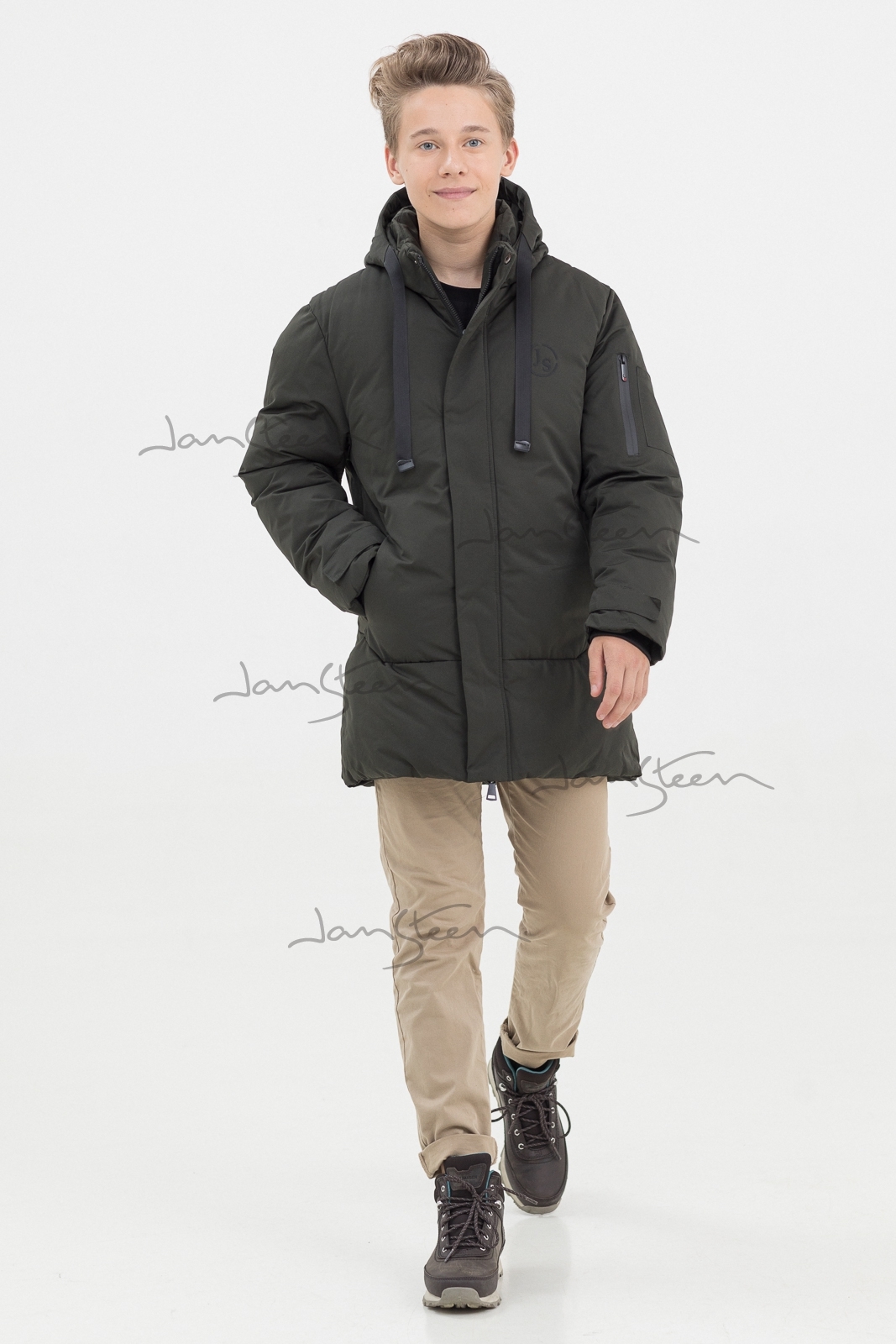 Парка прямого силуэта. Центральная застежка на закрытую тесьму молнию с ветрозащитной планкой на кнопках. Рукав втачной с внутренними трикотажными манжетами. Внутренняя кулиса по поясу. Основные карманы – двойные накладные карманы с клапанами на кнопке. Нагрудные врезные карманы с клапанами на кнопках. Накладной карман на рукаве на молнии.