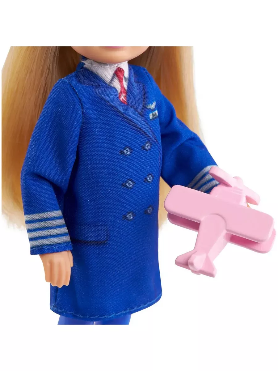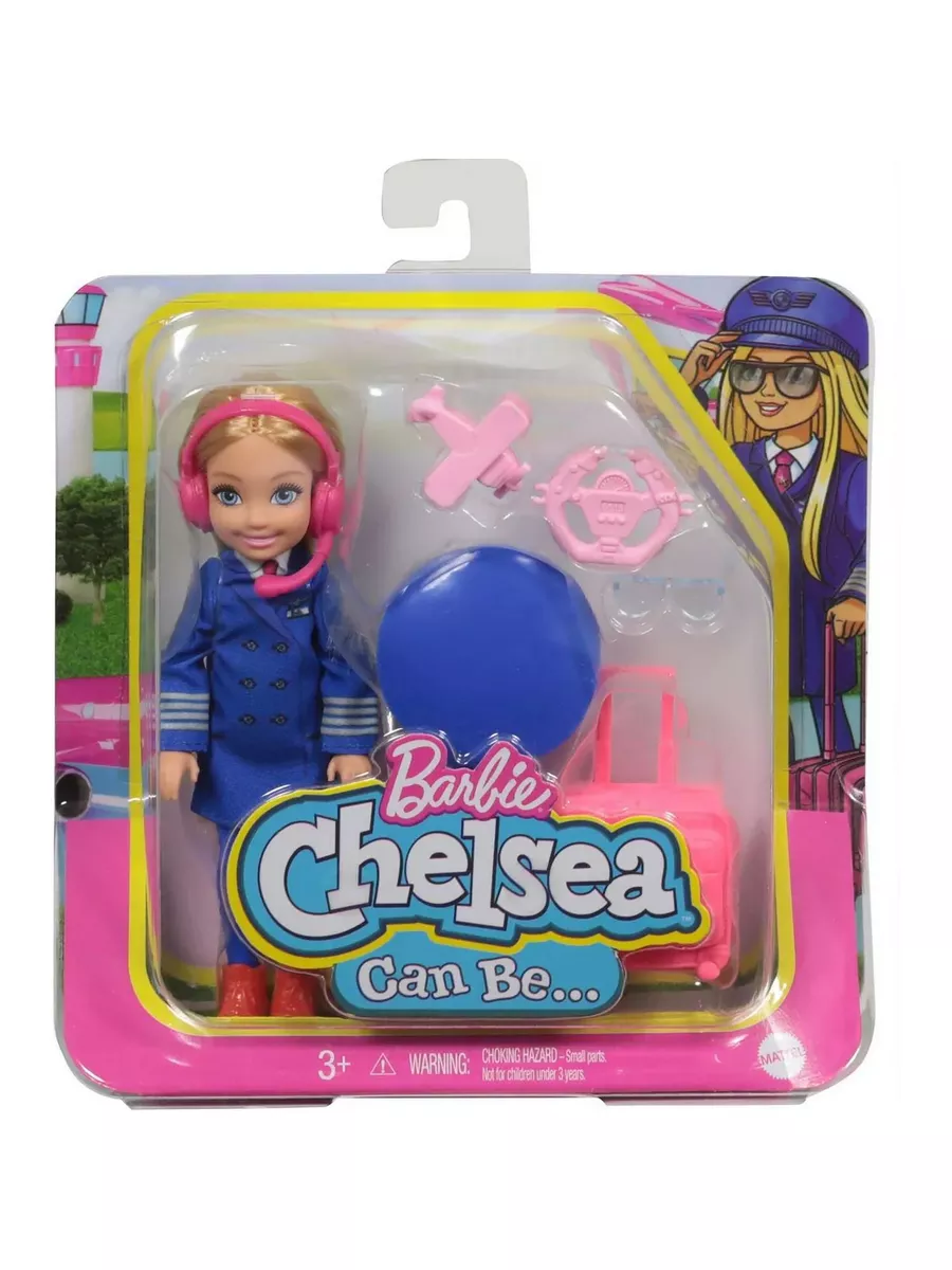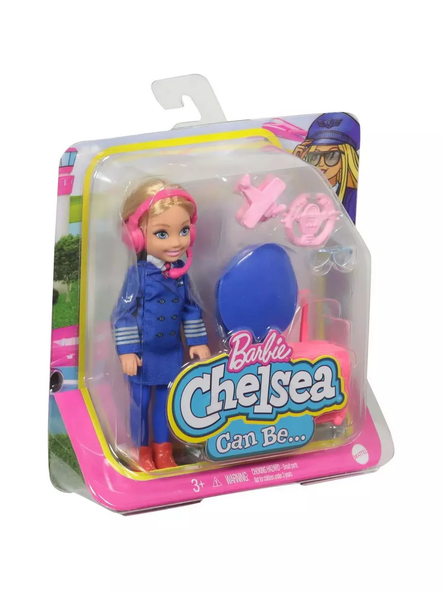 Как и ее старшая сестра Барби, Челси любить пробовать себя в разных специальностях. Постройте свою карьеру с набором “Пилот”! Здесь вы найдете куклу Челси высотой около 15 в тематическом наряде и аксессуары. В синем костюме пилота, с чемоданом, штурвалом и очками-авиаторами Челси готова покорять небеса. Скорее приступайте к освоению новой профессии, ведь с Барби и Челси вы можете быть кем угодно! Каждый набор продается отдельно. Кукла не может стоять без опоры. Цвета и декор могут отличаться от изображений.