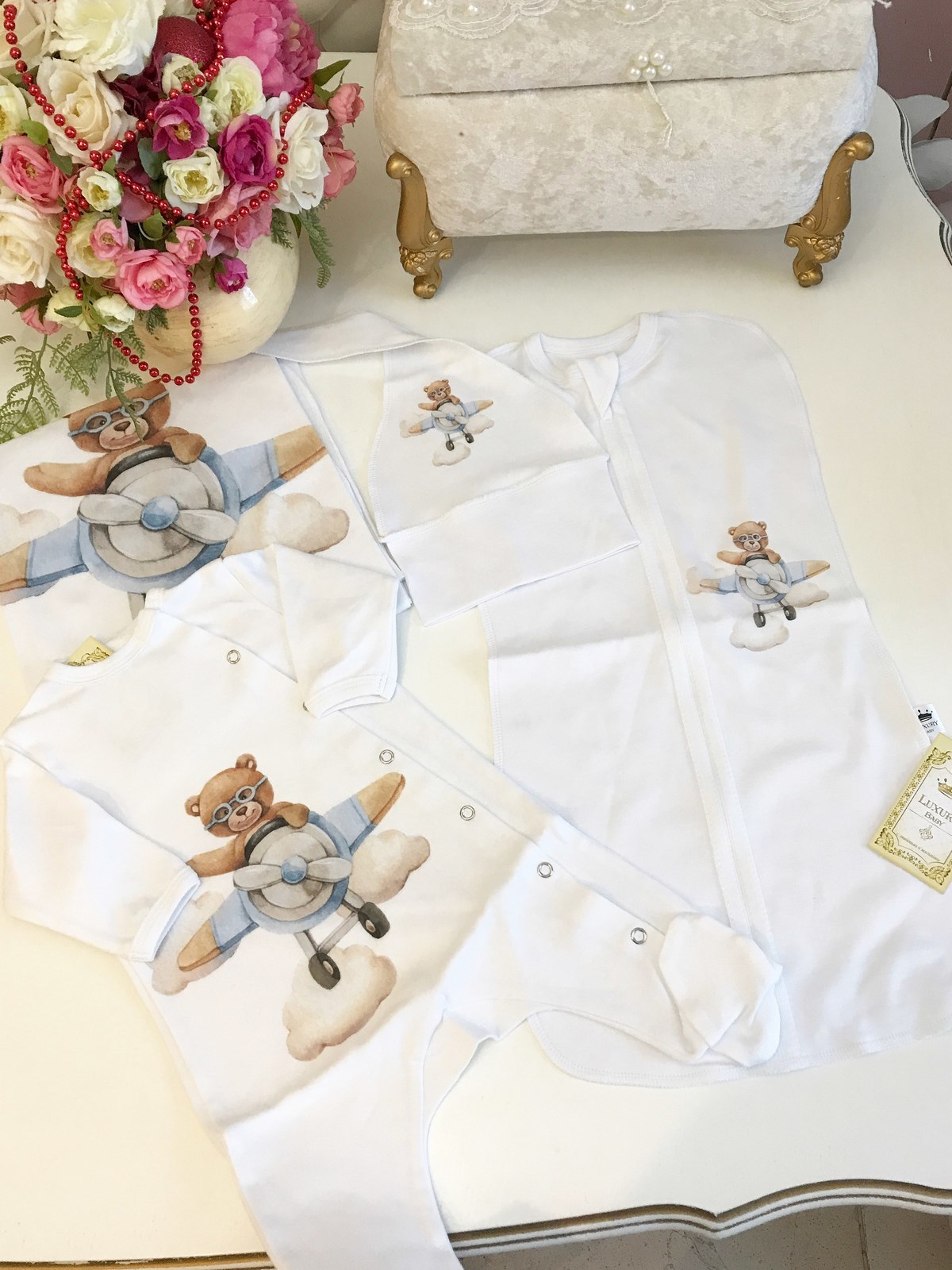 Пеленка-кокон "Мишка-пилот" с шапочкой