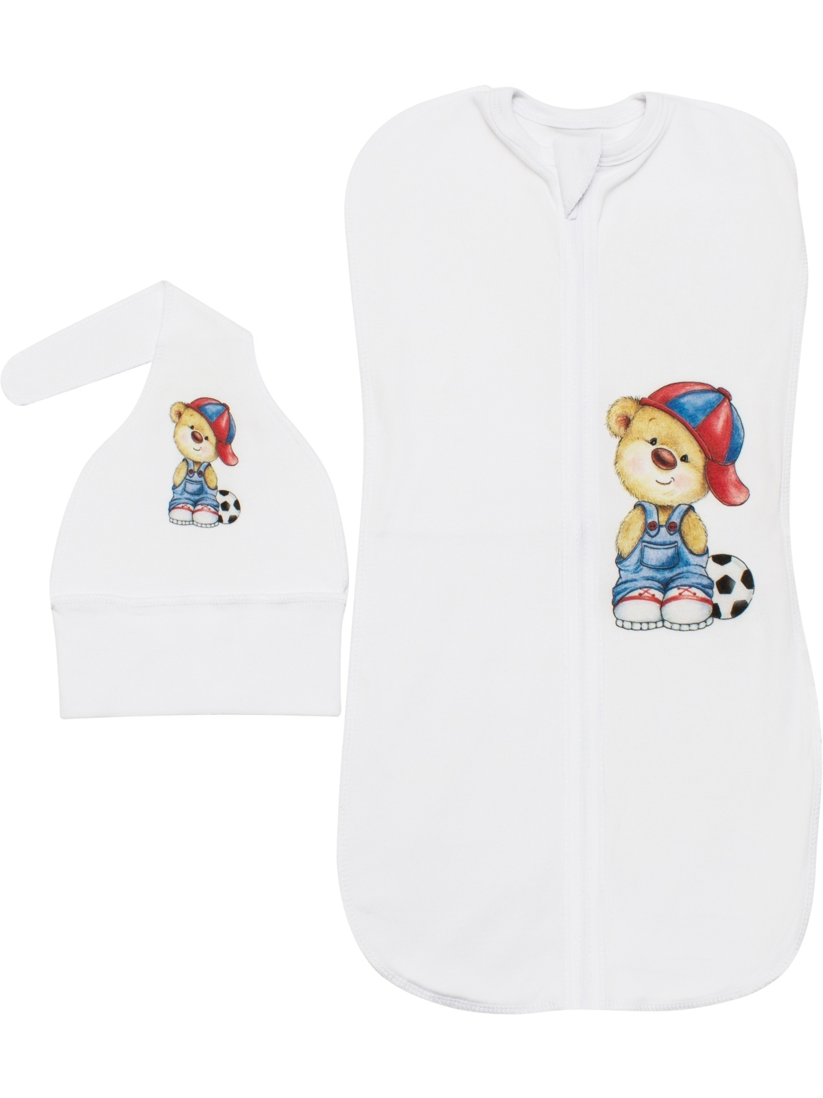 Пеленка-кокон "Мишка с мячиком" из серии Забавные зверята просто создана для самых сладких снов вашего малыша. Пеленка изготовлена из 100% хлопка, трикотаж (интерлок, самого высокого качества ПЕНЬЕ). Все швы и молния выполнены наружу, нежной коже вашего малыша ничего не повредить - ведь это так важно первые месяцы жизни. Сон словно в маминых объятьях. Теперь для крепкого сна не нужно тугое пеленание. Маме удобно, малышу комфортно - все это про наши изделия. В своём производстве мы используем краски на водной основе, которые абсолютно безопасны для малышей. Благодаря высокому качеству ткани и профессиональному промышленному оборудованию вы можете смело стирать наши изделия с печатью в стиральной машинке и рисунок останется такой же яркий и красивый. В комплект с пеленкой коконом входит шапочка.