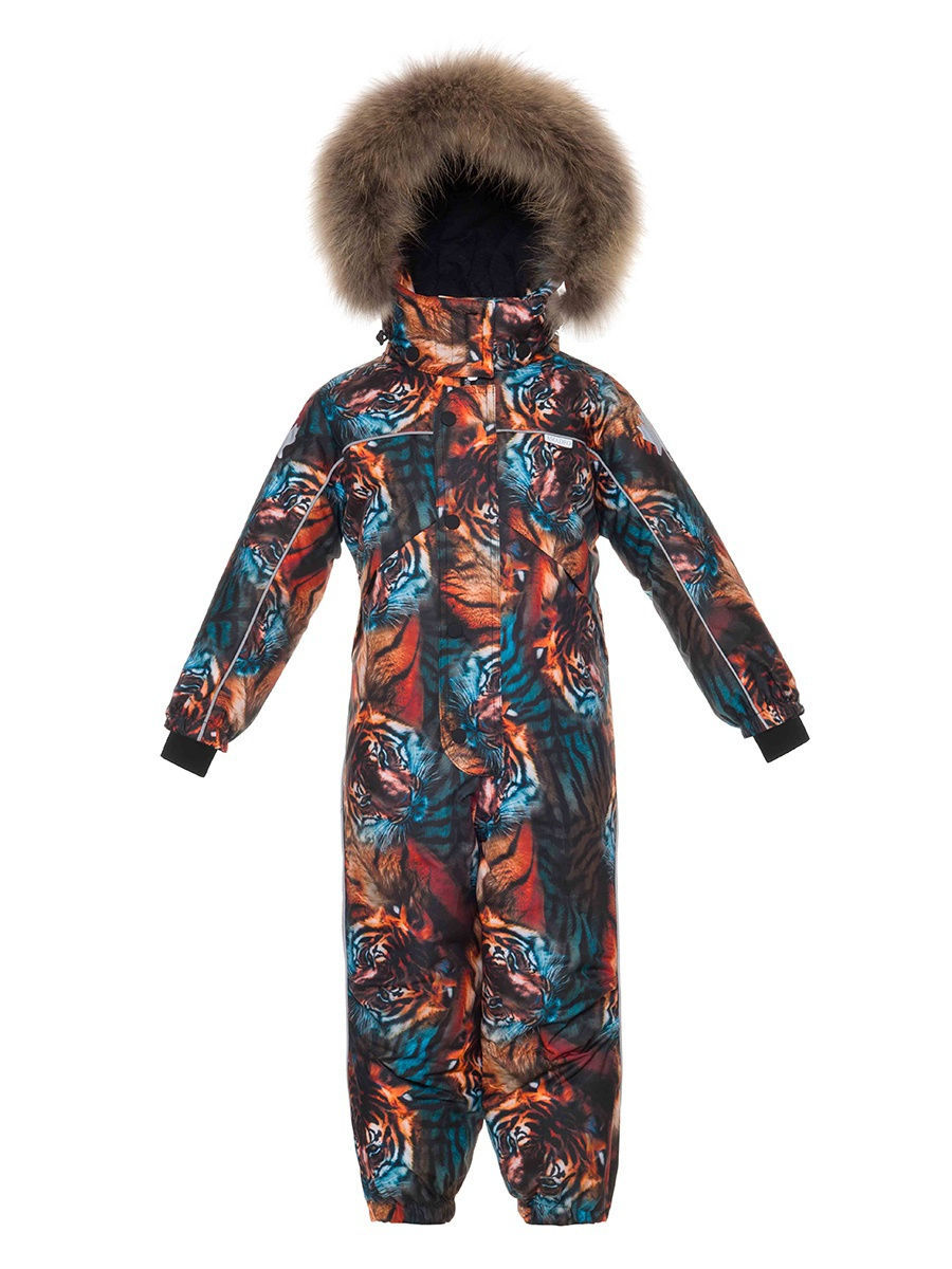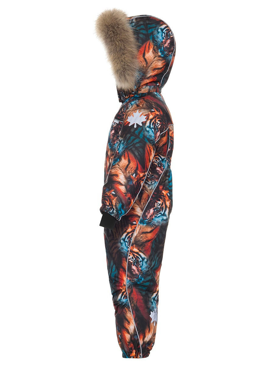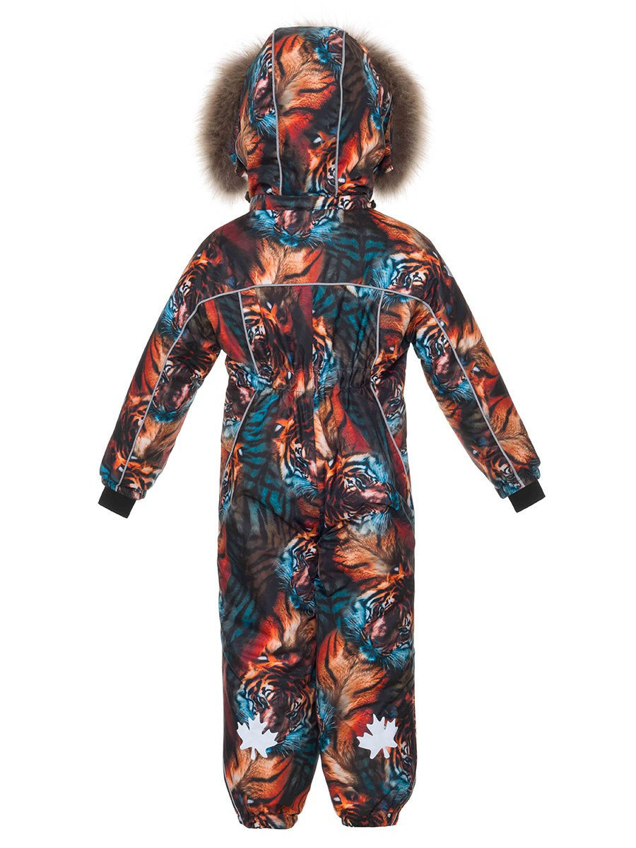 Ткань верха - мембрана. Водонепроницаемость 7000 мм водного столба. Паропроницаемость 9000 гр/м кв/24 часа. Трикотажная подкладка "футер" 70% хлопок, 30% полиэстер. Основные швы проклеены. Утеплитель "Шелтер" 200 грамм. Снежные гетры в брючинах, ветрозащита в капюшоне, капюшон отстегивается на 2 молнии + на 2-х кнопках. Трикотажные манжеты в рукавах, одевающиеся на палец. Светоотражающие элементы на рукавах, на брючинах сзади. Светоотражающие пуллеры. Отстегивающиеся штрибки. Натуральная опушка - енот.