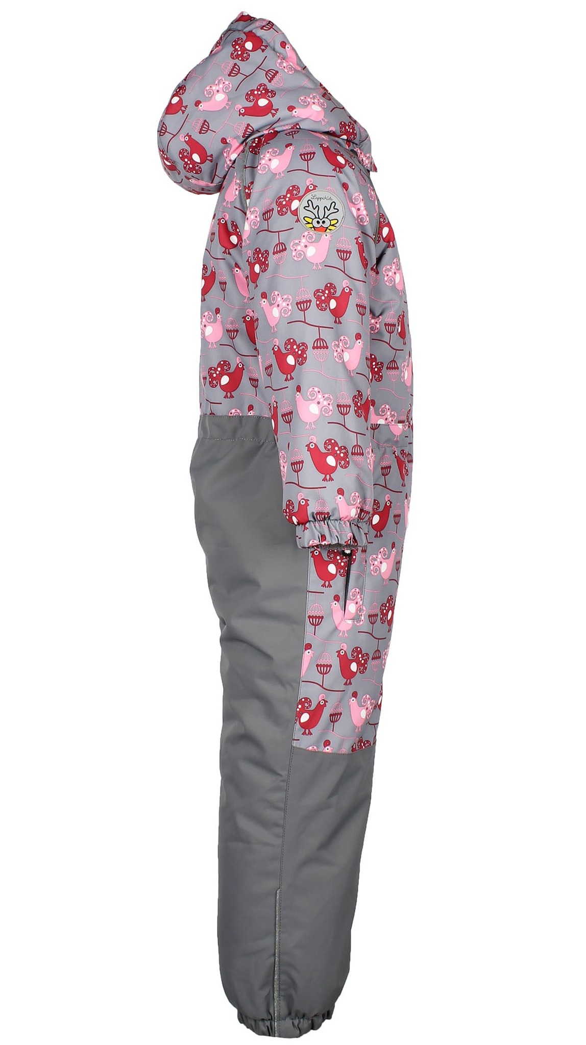 Комбинезон Lappi Kids Hetta для девочки. Изделие на мягкой уютной флисовой подкладке, верхняя ткань защищает от ветра и влаги. Комбинезон приятной расцветки, комбинация розового верха с милыми собачками и серого низа. Модель спереди и сзади имеет светоотражающие элементы , манжеты на резинке с флисовыми вставками. Особенности изделия: влагостойкость: 5000 мм. Воздухопроницаемость: 5000 гр./м2 /24 ч. Проклеенные внешние швы.