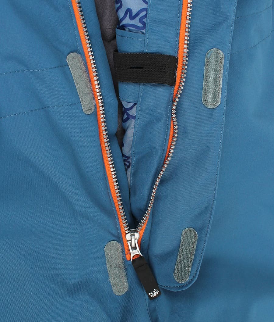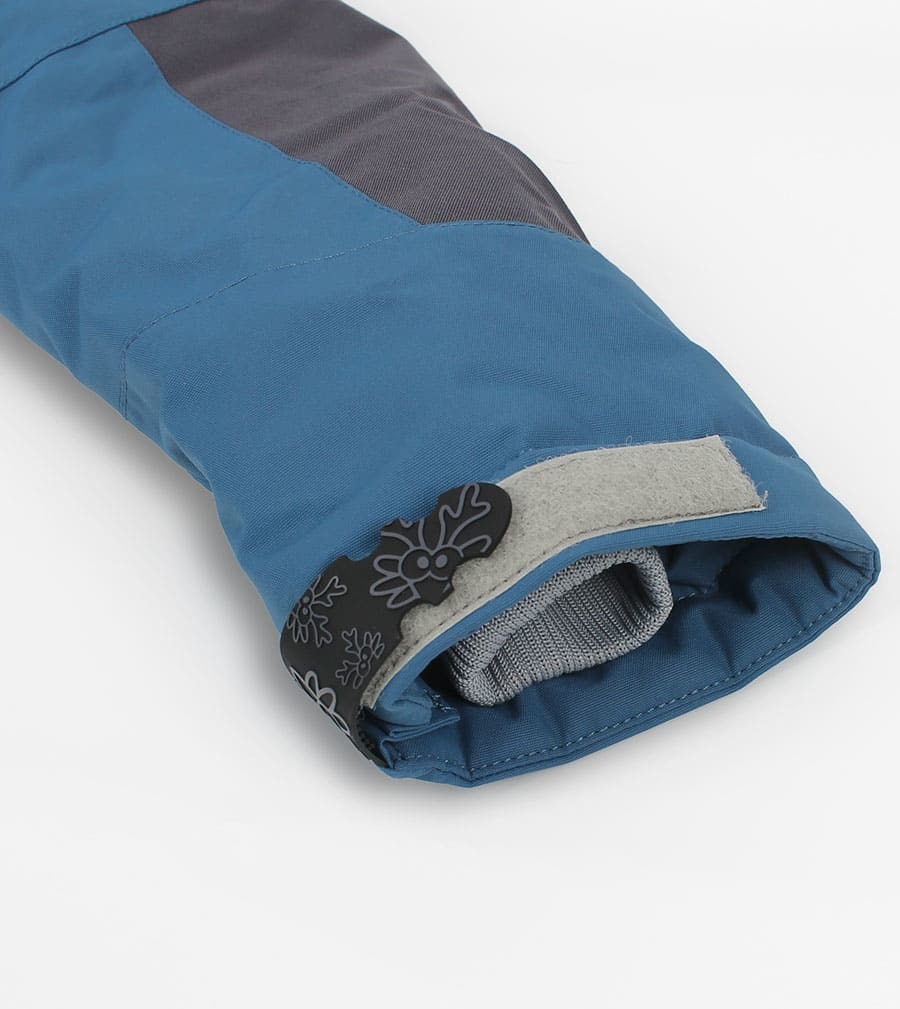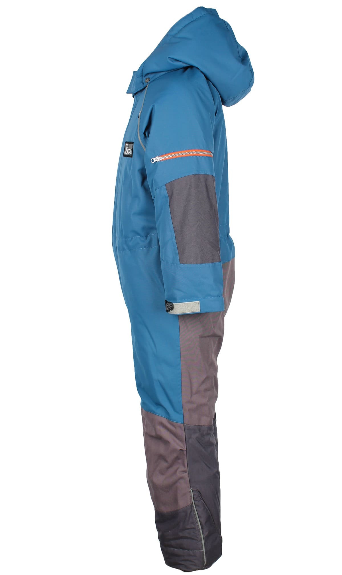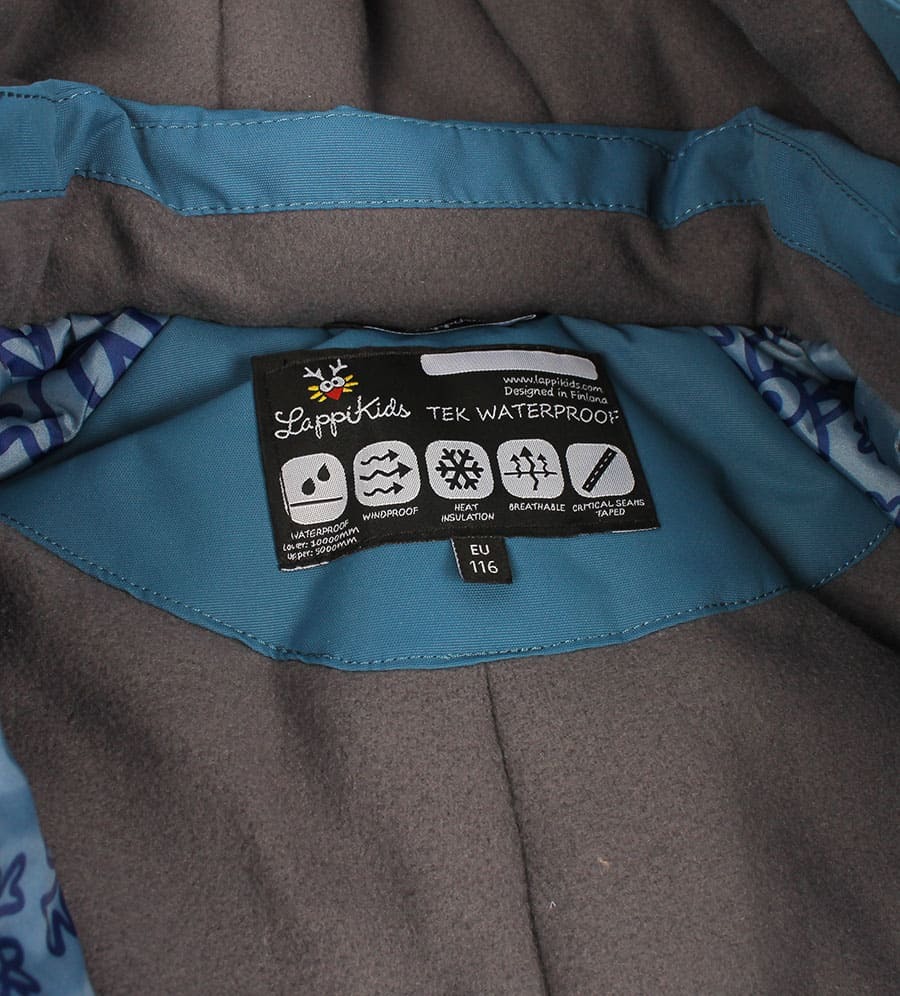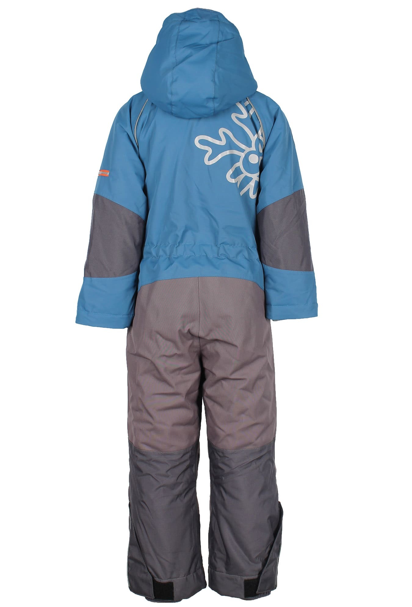 Теплый комбинезон Lappi Kids Riehu 4258-517 для мальчика из высококачественной мембраны. Модель спереди и сзади имеет светоотражающие элементы, манжеты на резинке с флисовыми вставками.