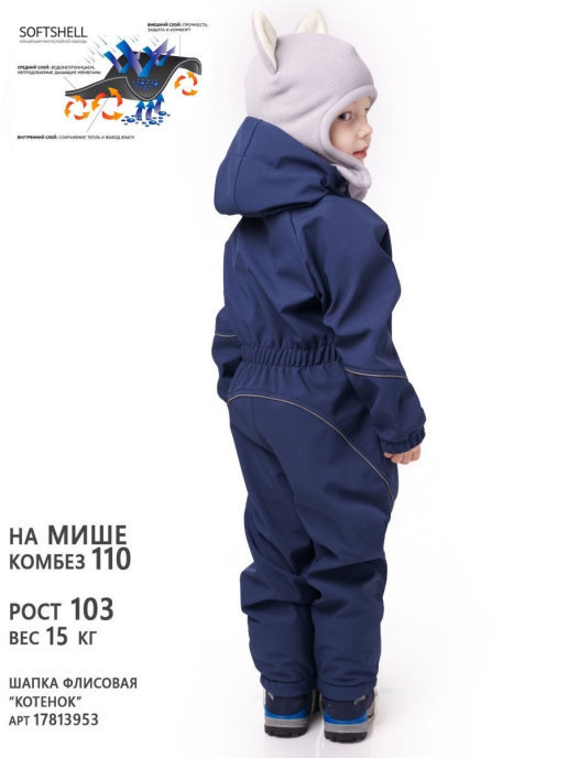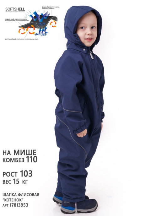 SOFTSHELL - комбинезон из суперудобной ткани Софтшел - снаружи мембрана, внутри флис (без подклада), легкий, но теплый, "дышащий". Удобнейший комбинезон! Максимально функциональный - молния уходит в ножку - ребенку будет удобно надевать самому, отстегивающийся капюшон с козырьком для защиты от дождя, солнца и ветра, силиконовые "вечные" штрипки, внутренние лямки - удобно снимать в помещении, пуллер на бегунке, карман на молнии, светоотражащий кант для безапасности. Ножки и ручки нейтральных цветов - для "прикрытия" грязи. Мембранное покрытие отталкивает воду, но швы не проклеены - в сильную грязь и слякоть все-таки рекомендуем поверх наши непромокайки, так мембрана дольше прослужит без стирок. Температурный режим 0 +18 Рекомендуем к комбезу флисовые шапки с ушками - из двойного флиса - теплые и веселные!