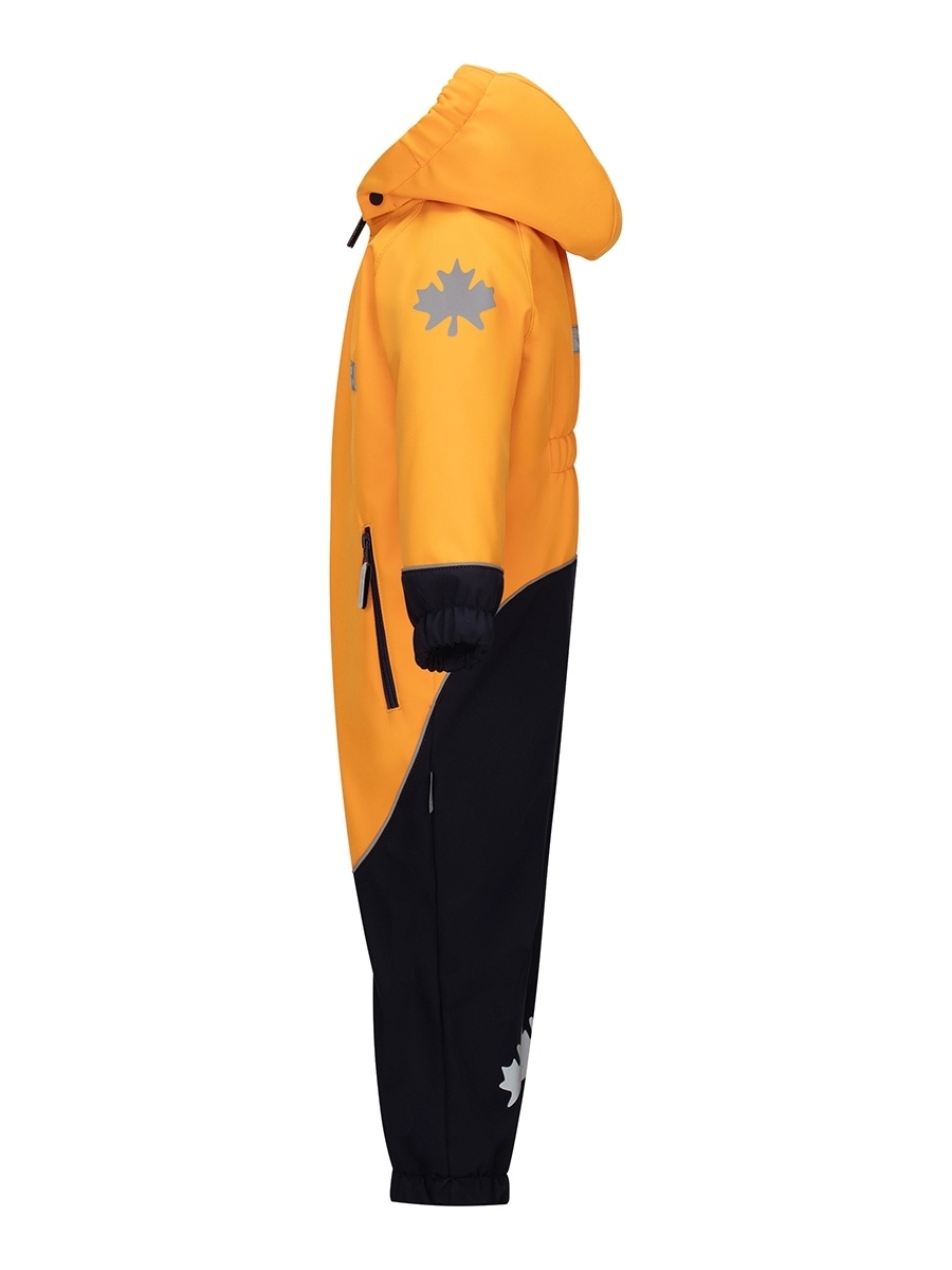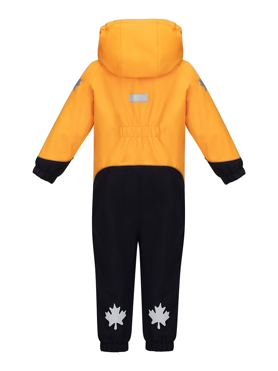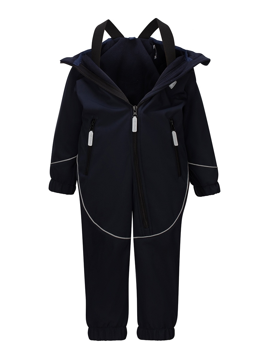 Комбинезон выполнен из материала "Софтшелл". Это высокотехнологичная трёхслойная дышащая ткань - мембрана утеплённая флисом. Отлично защищает от влаги и ветра. Светоотражающие элементы. Манжеты и пояс на резинке. Регулируемые штрипки. Для удобства ношения в помещении,предусмотрены внутренние лямки.Универсальный вариант для прогулок, активных игр и повседневного использования. Температурный режим от +3 до +18 градусов.