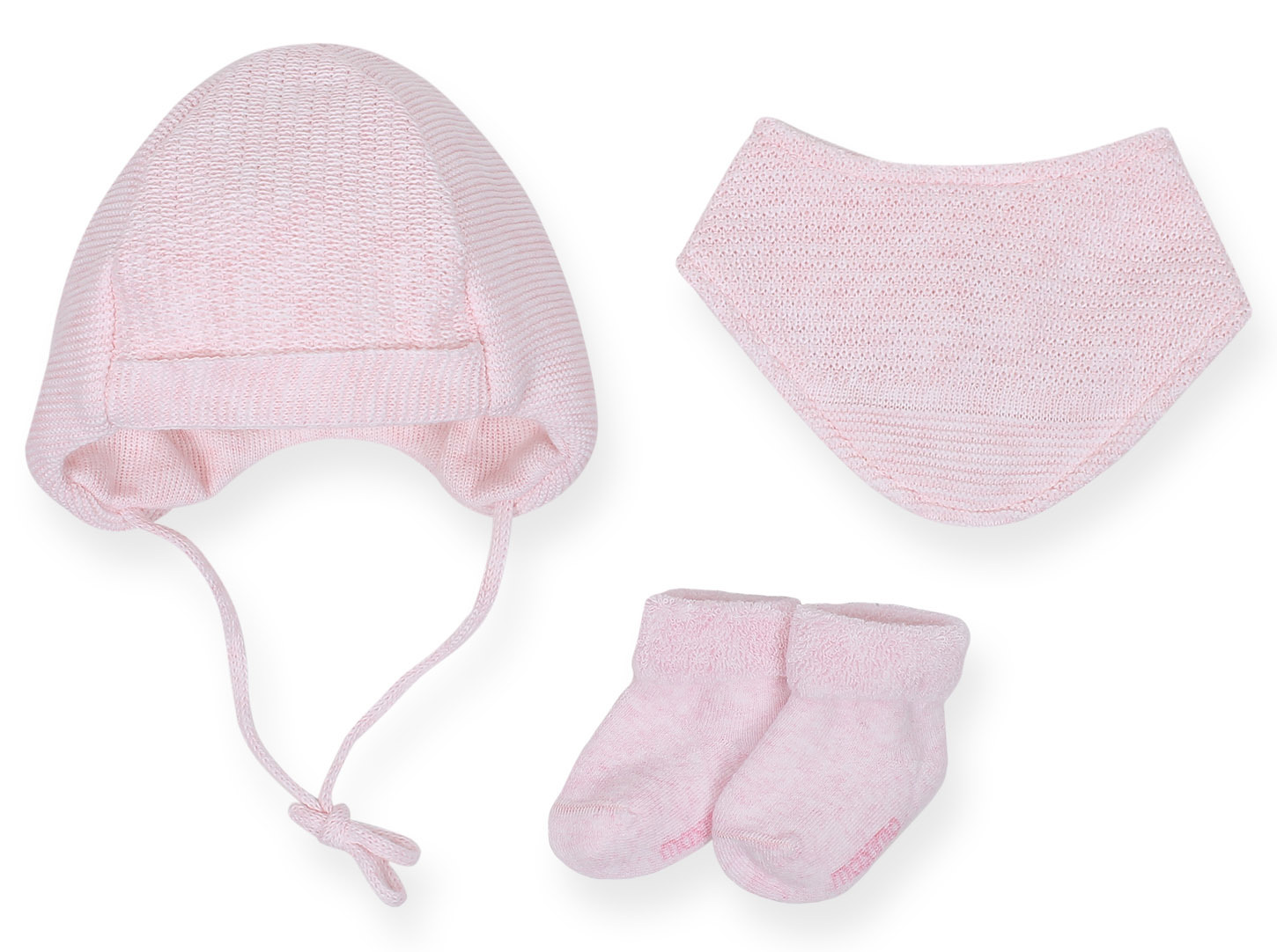 Красивый комплект для новорожденного (3 предмета) нежно-розового цвета Maximo для девочки. Размер шапочки: 41-42. Состав ткани: хлопок 100%. Произведено в Германии.