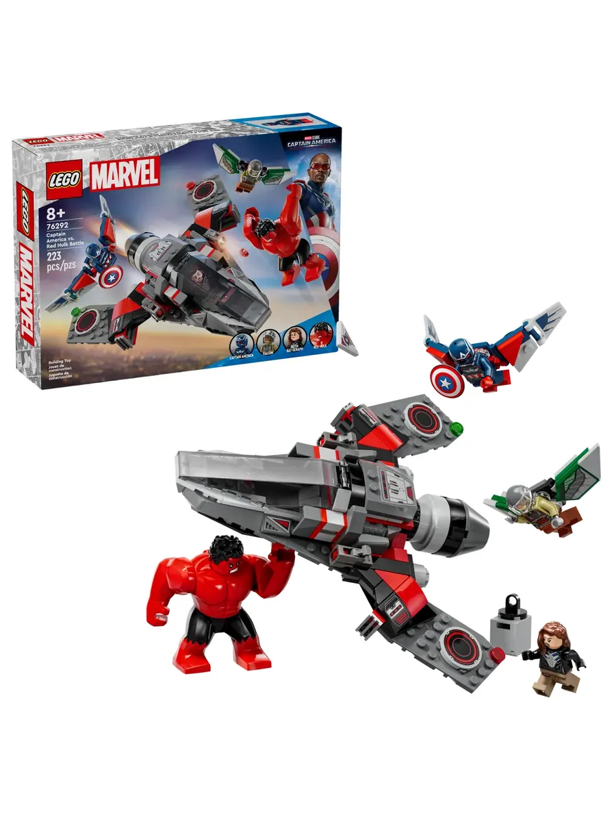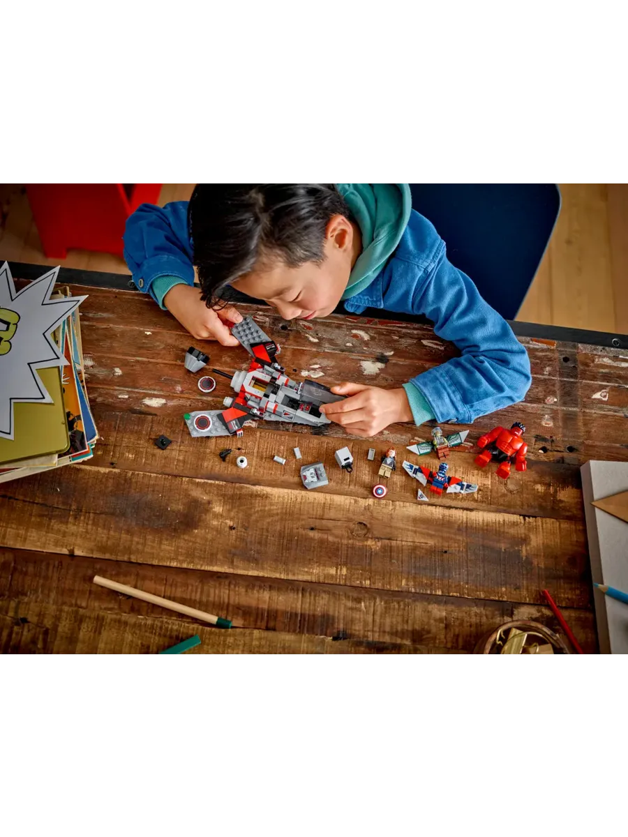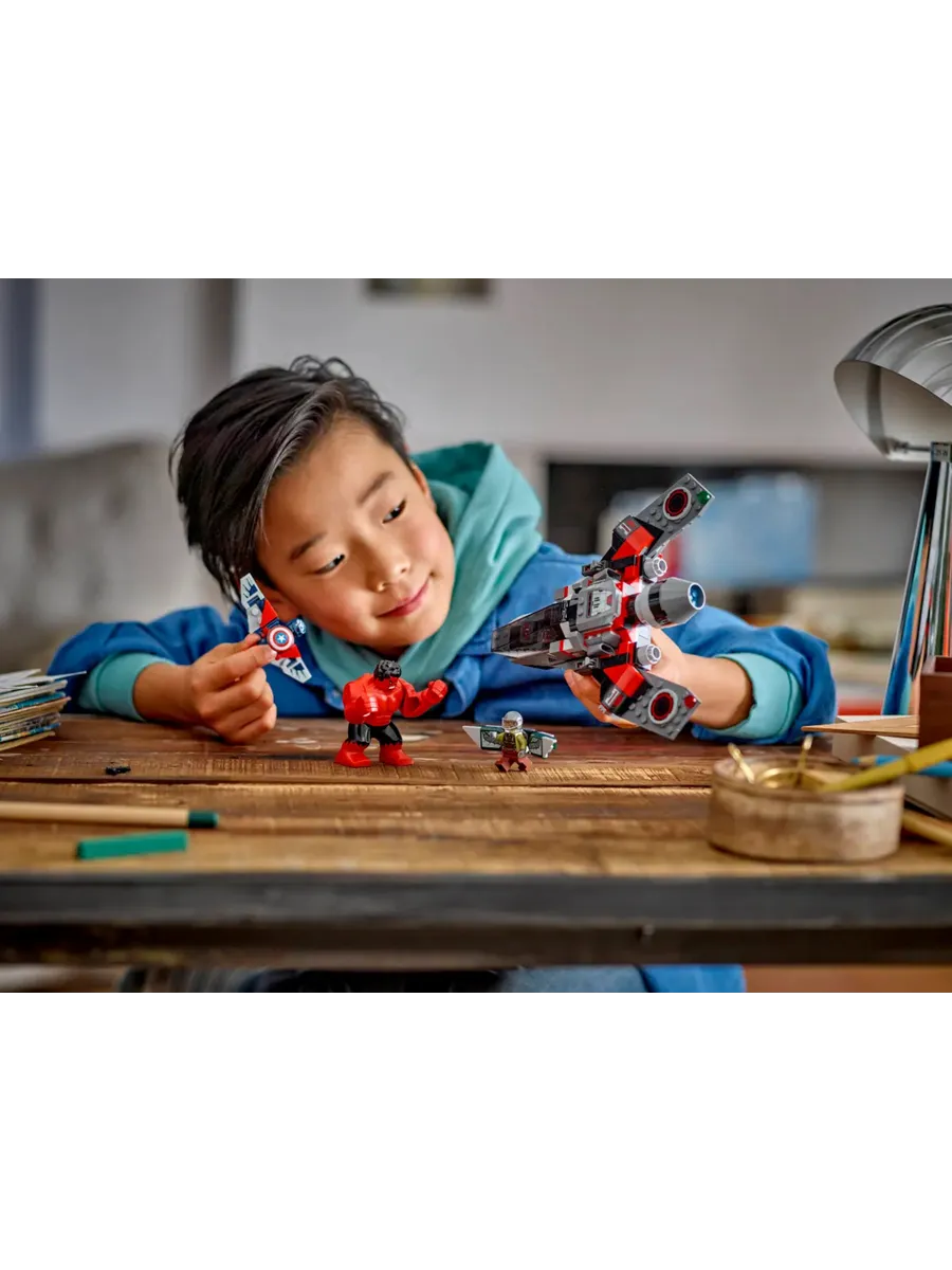 Истребитель «Супергерой» — LEGO Marvel «Битва Капитана Америки против Красного Халка» — это конструктор для мальчиков и девочек от 8 лет, который отправит детей в бесконечные захватывающие приключения в небе.