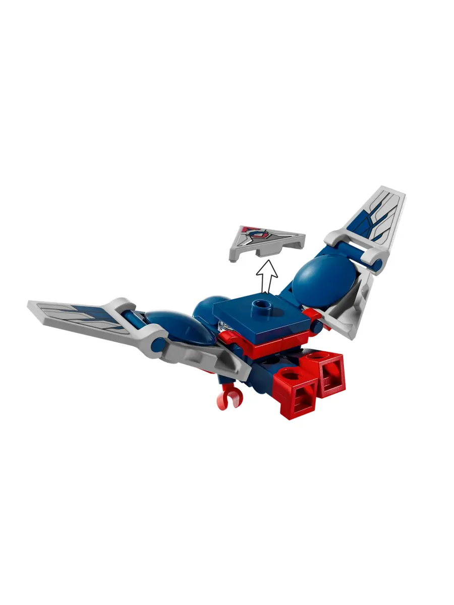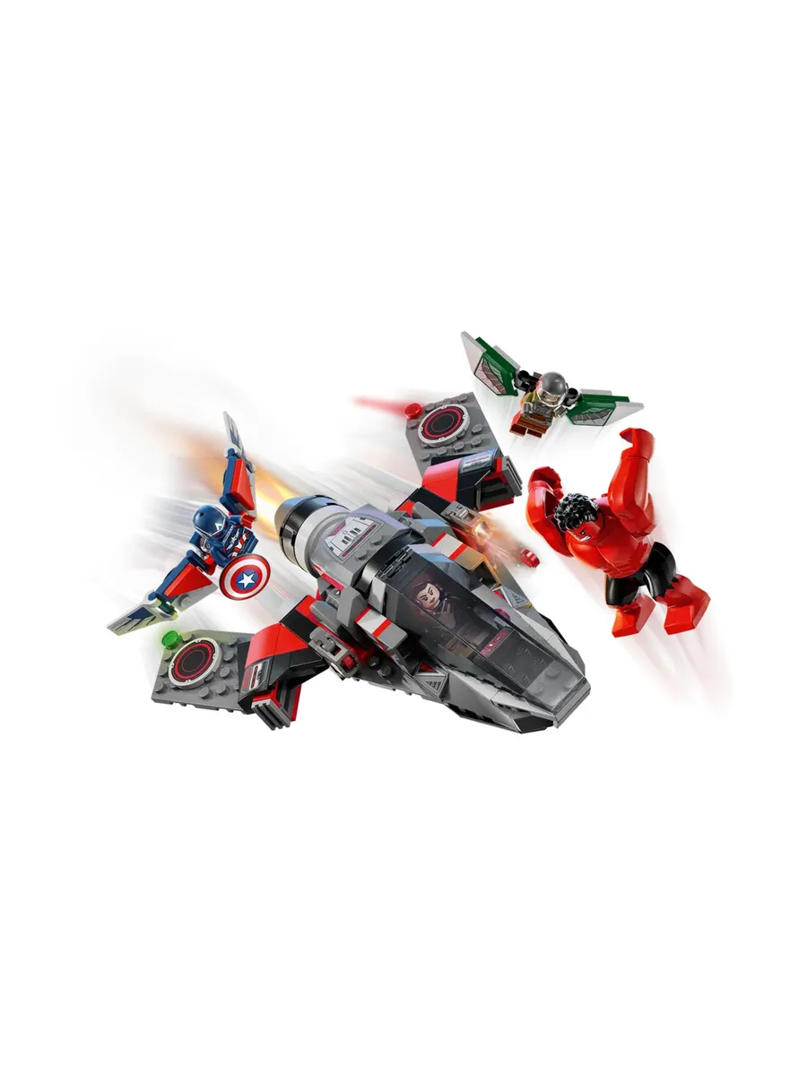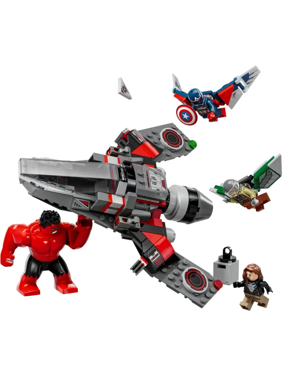 Эта сборная игрушка-истребитель включает в себя впечатляющий набор минифигурок: Капитана Америку и Сокола (оба с раскрывающимися крыльями), Красного Халка и Рут Бэт-Сераф. Благодаря большой открывающейся кабине, в которой может разместиться пилот-минифигурка, дети могут легко держать самолёт в руках, управлять им и атаковать с помощью двух прикреплённых пулемётов. Верхнюю часть самолёта можно снять, чтобы открыть потайное отделение в задней части, где можно хранить запасные пулемёты или загадочные металлы. Этот конструктор идеально подходит для самостоятельной ролевой игры. Чтобы было ещё интереснее, дети могут увеличивать модель, вращать её в 3D и отслеживать ход сборки с помощью удобного и интуитивно понятного приложения LEGO Builder.