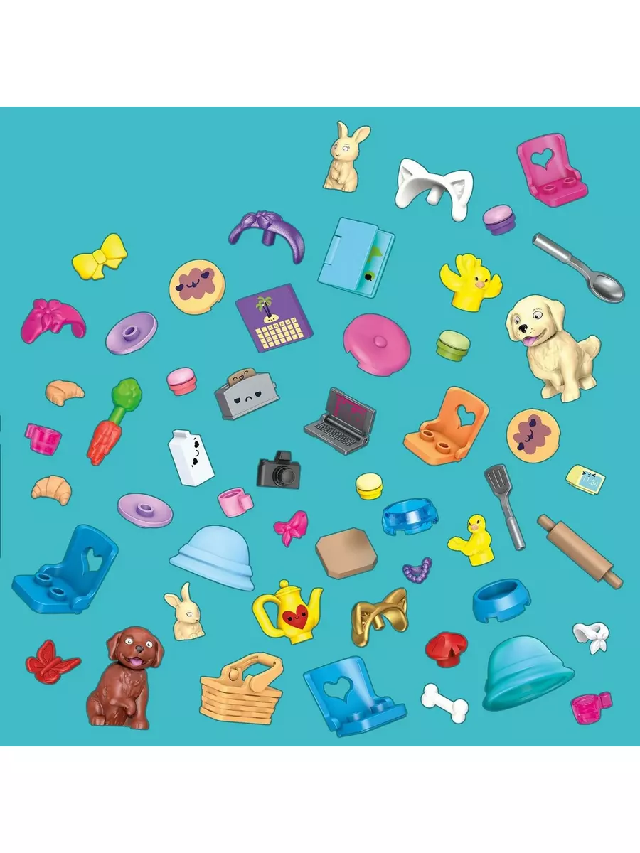7 кукол, 5 питомцев, 9 оснований, 440 строительных блоков