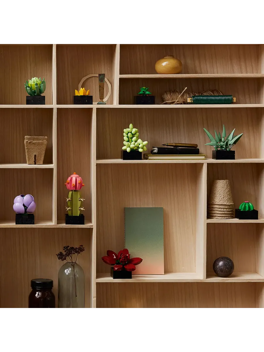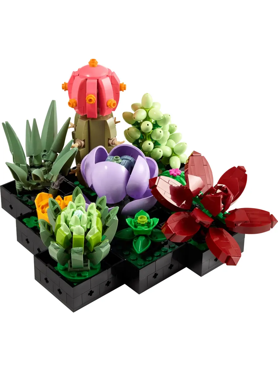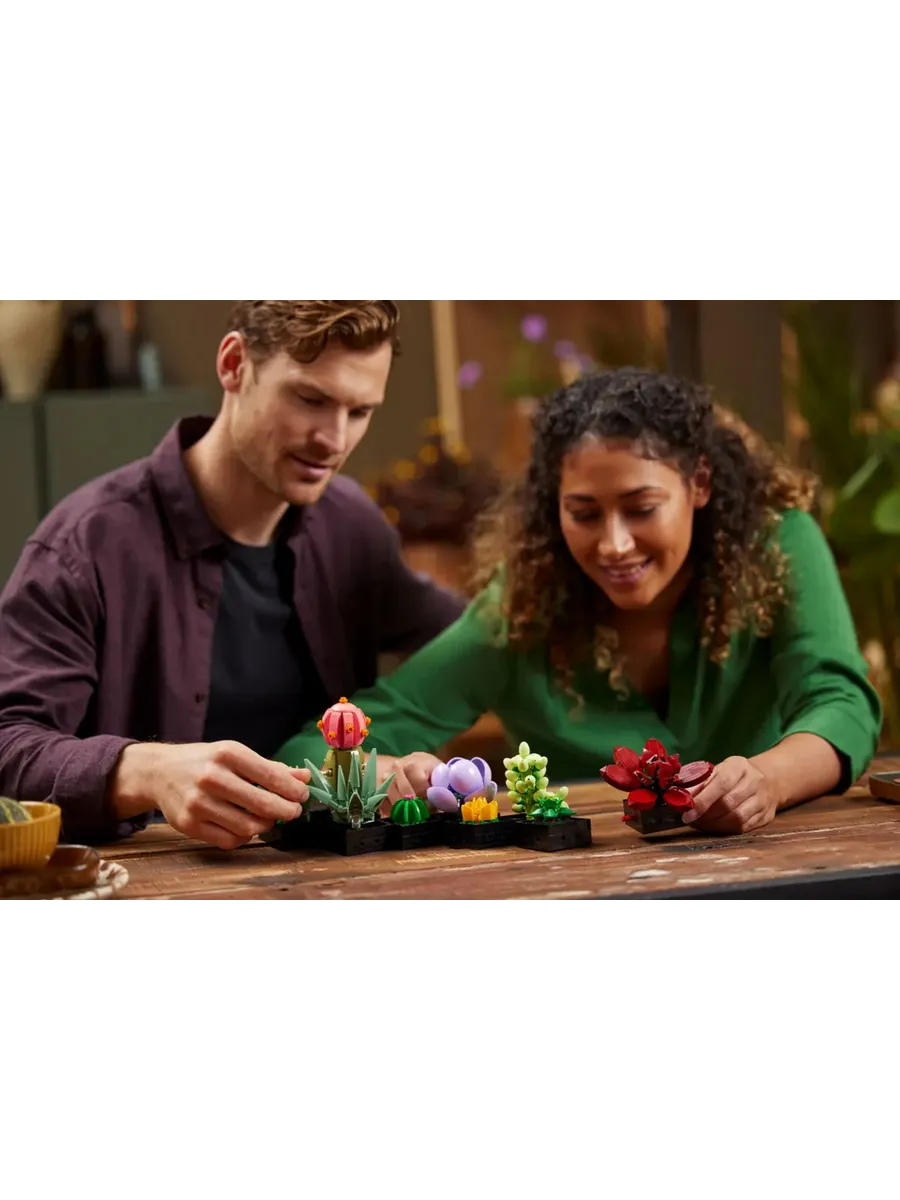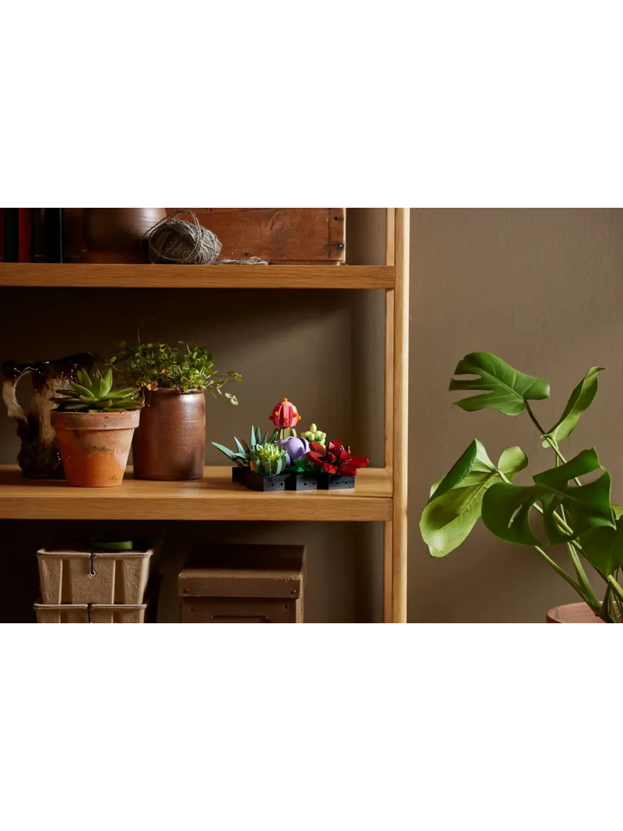 Суккуленты — популярный способ добавить растения в интерьер и украсить его. Теперь вы можете с удовольствием заняться строительством и создать элегантную композицию из растений для своего дома с помощью этого набора LEGO «Суккуленты» (10309) для взрослых. Не торопитесь, прорабатывая все детали 9 различных суккулентов, каждый из которых вдохновлен реальным растением. А затем продемонстрируйте свою креативность, создав композицию из растений, не требующих особого ухода.