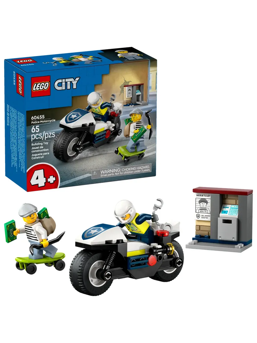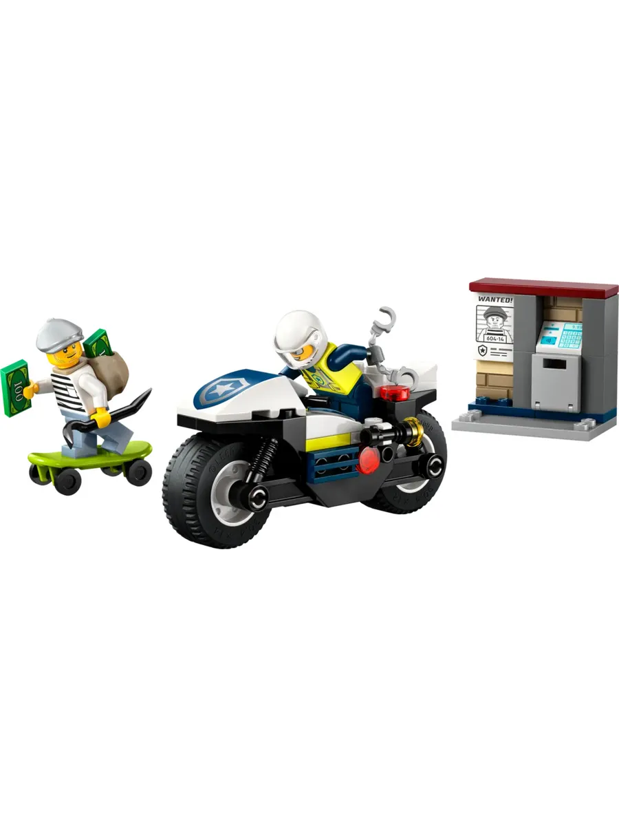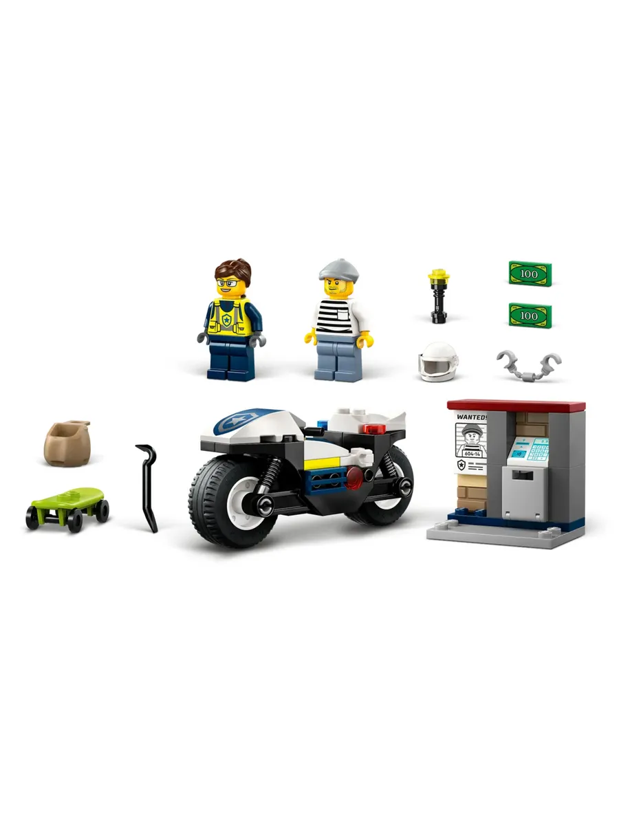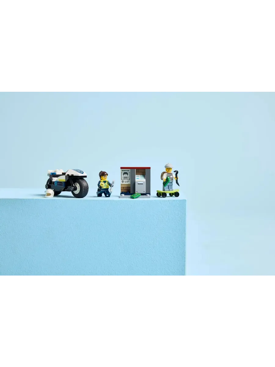 Удивите своего юного героя боевиков этим захватывающим игровым набором LEGO City Police Motorcycle Chase (60455). Он идеально подходит для маленьких конструкторов в возрасте от 4 лет. В набор входит крутой полицейский мотоцикл с широкими шинами, скейтборд для побега преступника и открывающийся мини-банкомат с игрушечной банкнотой. Просто добавьте минифигурки полицейского и преступника, чтобы часами играть и придумывать истории.