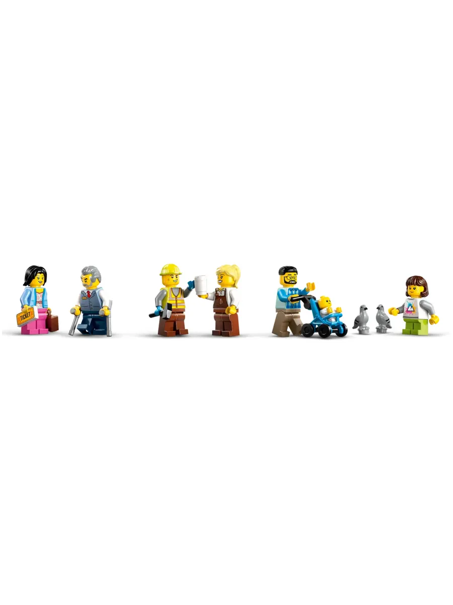 Эта строительная игрушка LEGO City Central Train Station (60469) для детей от 7 лет и старше оснащена множеством интересных функций для творческих игр на 3 уровнях. Игрушечная станция с классической часовой башней включает в себя уютный кофейный бар, работающий лифт, диспетчерскую, автобусную остановку, 2 пассажирские платформы, табло с расписанием и билетный автомат. Детям также достанется транспортное средство для обслуживания железной дороги с подъёмником, а также 6 минифигурок, фигурка младенца и 2 фигурки голубей для ролевых игр и придумывания историй.