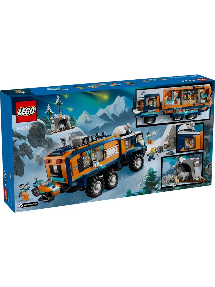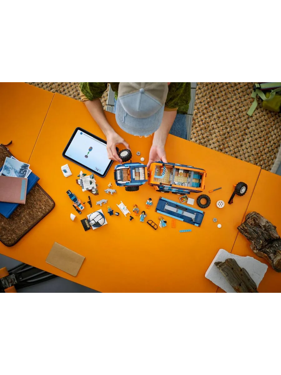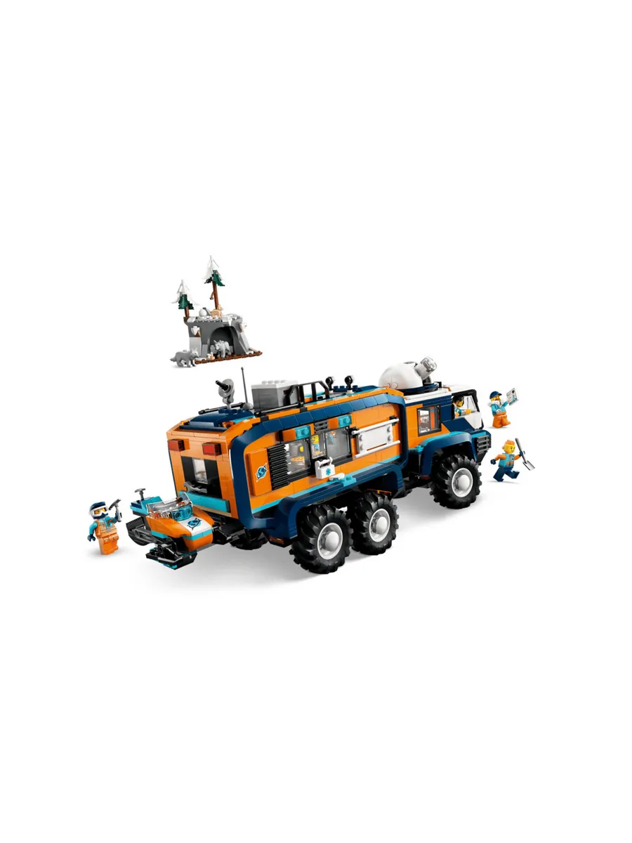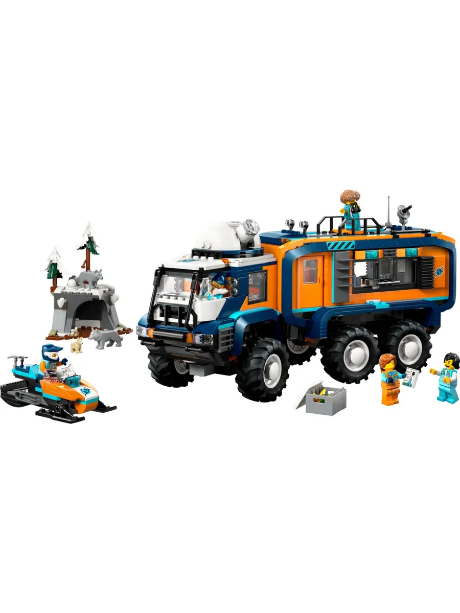 В этом реалистичном игровом наборе есть шарнирный игрушечный грузовик с 6-колесной подвеской, шинами с глубоким протектором и вращающейся обсерваторией на крыше, а также интересные детали интерьера, включая кабину водителя, лабораторию и уютную гостиную с ванной, кухней и спальней. Дети также получат игрушечный снегоход и набор «Арктическая пещера», а также 5 минифигурок исследователей и 3 фигурки арктических волков, в том числе щенка, для творческих игр.