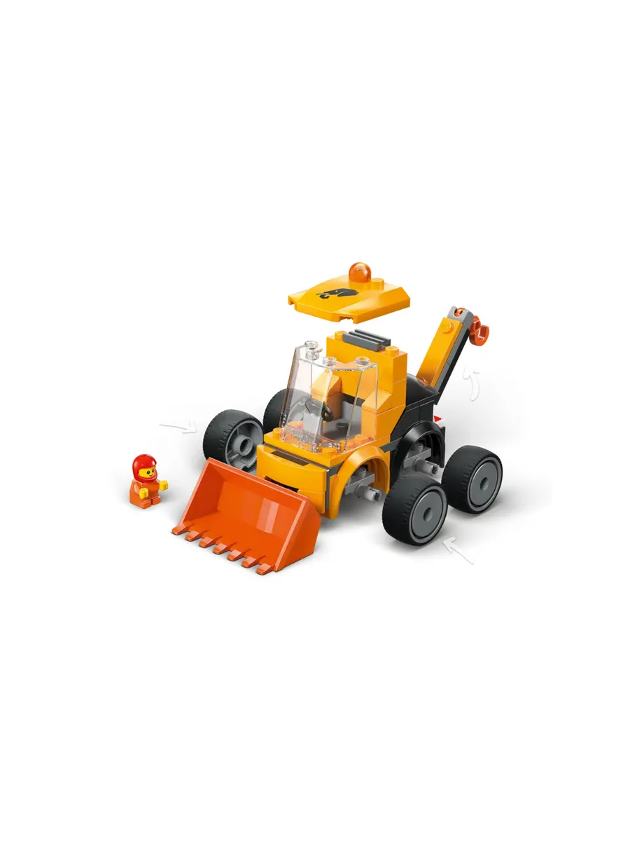 В этот набор для мини-строительства входят все детали, необходимые детям для создания собственного игрушечного строительного грузовика и минифигурки LEGO City Rides. Классический дизайн с резиновыми шинами, кабиной водителя, ковшом фронтального погрузчика и экскаватором-погрузчиком, оснащенным крюком, для захватывающей игры понарошку.