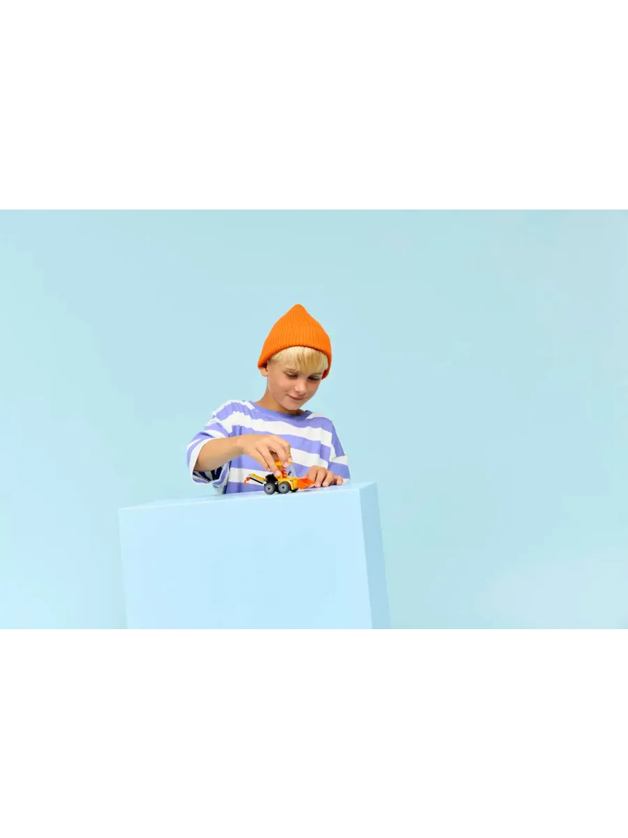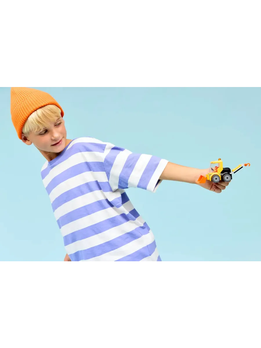 Дети могут посадить минифигурку младшего строителя в кабину и отправиться в большие приключения.