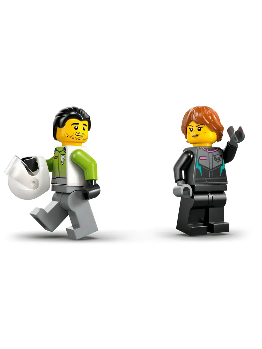 ЧТО В КОРОБКЕ? – Включает в себя все необходимое для сборки игрушечного суперкара и реактивного самолета, а также минифигурки пилота и погонщика для эпических гоночных приключений. Дети могут сдвинуть рычаг, чтобы включить форсажную камеру самолета, и открыть кабину суперкара, чтобы попасть внутрь.