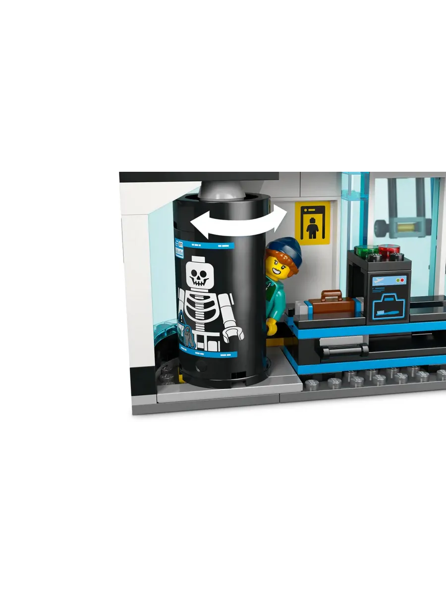 Дети могут пропускать багаж через игрушечный сканер, поворачивать металлодетектор, чтобы увидеть рентгеновский скелет, и менять табло вылета, чтобы выбрать один из 4 пунктов назначения. В набор также входит классный игрушечный пассажирский самолёт с детально проработанным салоном и откидными трапами, а также буксир и мостик. Просто добавьте 9 минифигурок, и у вас будет много часов для увлекательной игры. Эта игрушка в виде аэропорта станет отличным подарком для мальчиков, девочек и детей, которые любят модели самолетов и конструкторы LEGO. Добавьте ее к другим наборам (продаются отдельно) из серии LEGO City, чтобы отправиться в еще более захватывающие приключения.