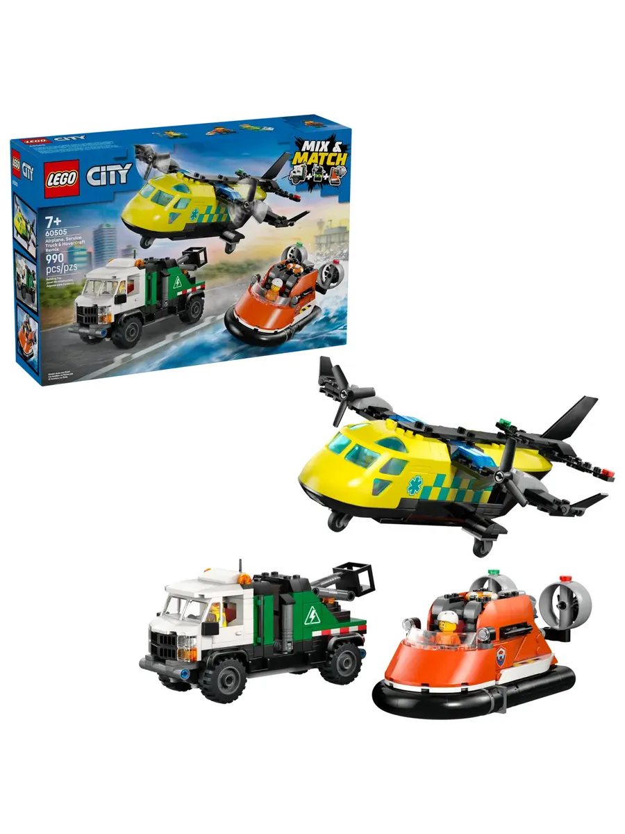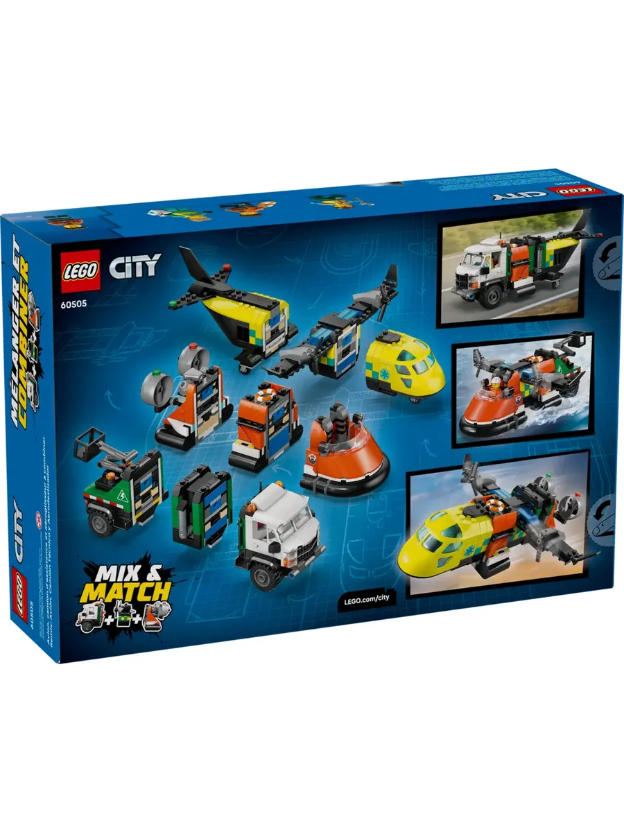 Поощряйте творческие игры с помощью набора LEGO City «Самолёт, грузовик и судно на воздушной подушке» (60505) для детей от 7 лет. В этот набор для сборки игрушечных транспортных средств экстренных служб входят 3 модели: медицинский самолёт, судно на воздушной подушке береговой охраны и служебный грузовик с манипулятором. Каждая модель состоит из 3 модульных деталей, которые можно комбинировать, что позволяет мальчикам и девочкам создавать разнообразные транспортные средства для захватывающих миссий. Дети могут быстро и легко разбирать и собирать секции автомобиля, создавая собственные модели для увлекательных поисково-спасательных миссий.