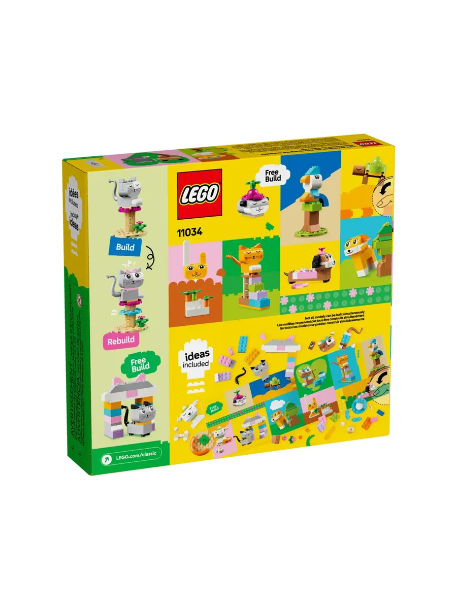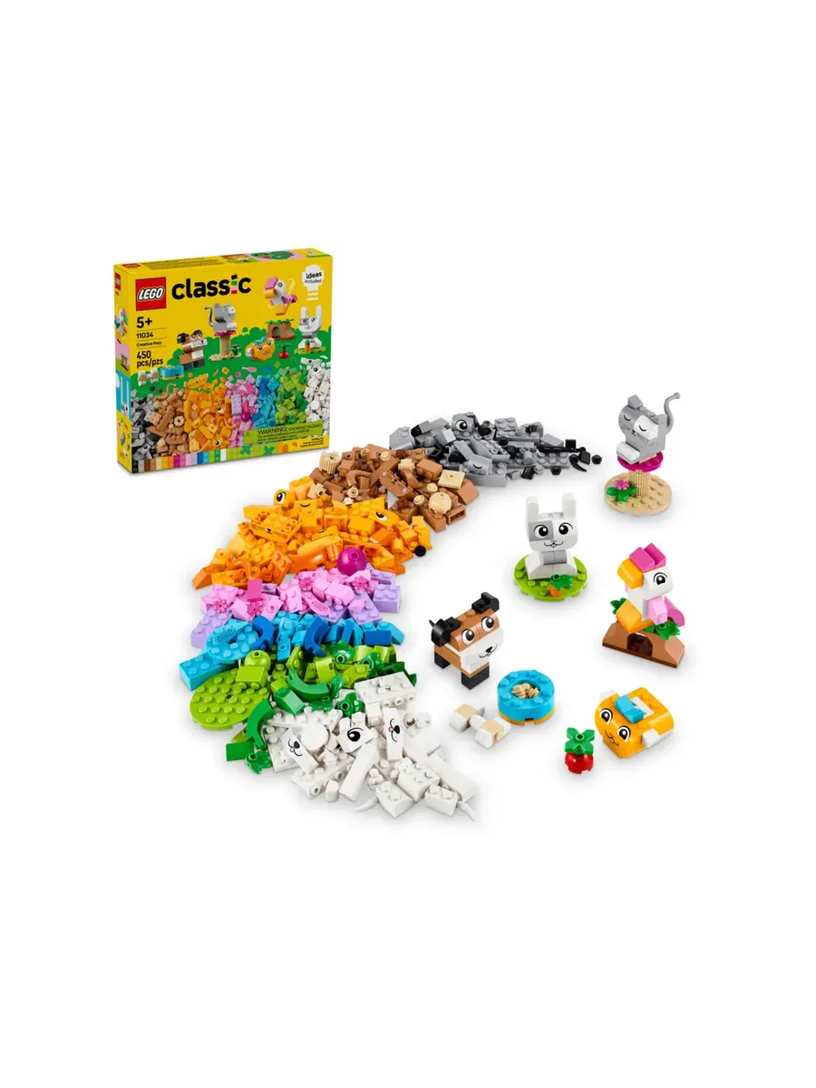 Любители животных в возрасте от 5 лет и старше могут удовлетворить свою страсть к домашним питомцам с помощью этого набора для творческого конструирования. LEGO Classic Creative Pets (11034) — это вдохновляющее сочетание кирпичиков для конструирования животных с простыми инструкциями по сборке красочных игрушек-животных. Это отличный способ развить у детей творческие способности к конструированию.