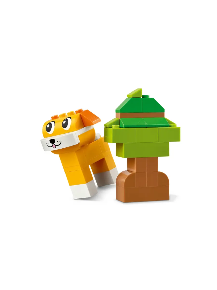 С помощью 450 строительных кубиков LEGO, включая специальные детали с глазами и ртами, и простых пошаговых инструкций дети могут собрать собаку с миской и костью, кошку на подставке, хомяка с яблоком, кролика с морковкой и птицу на жердочке. Затем, используя предложенные альтернативные цвета, формы и функции, дети могут по-новому собрать своих питомцев. По мере развития творческих навыков конструирования дети могут пробовать свои собственные идеи. В комплект входит руководство с 10 идеями, которые помогут вам начать увлекательное строительство.