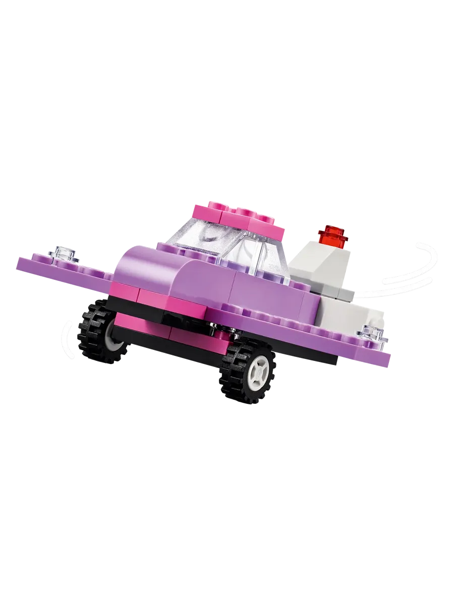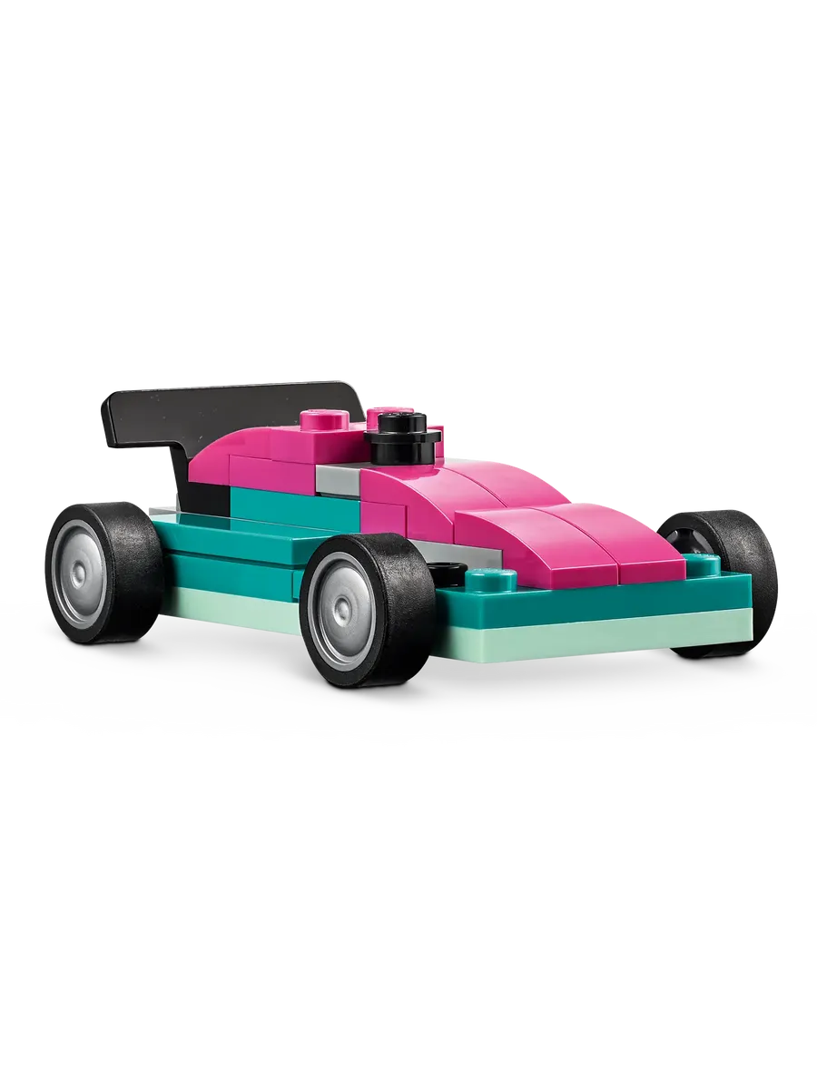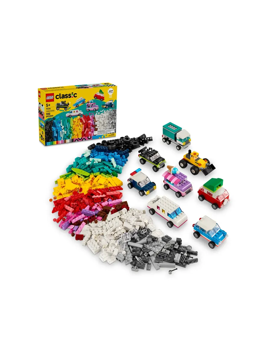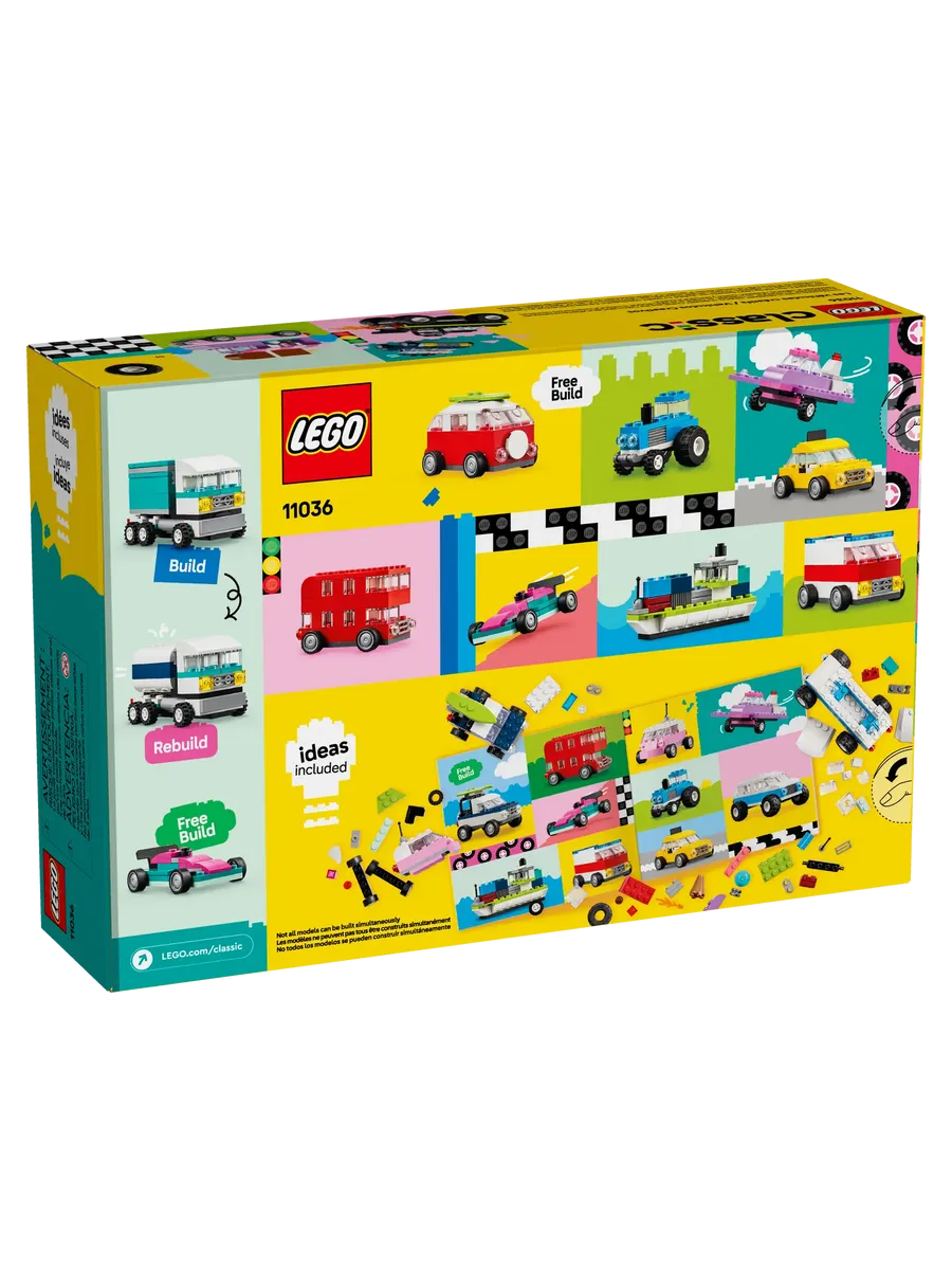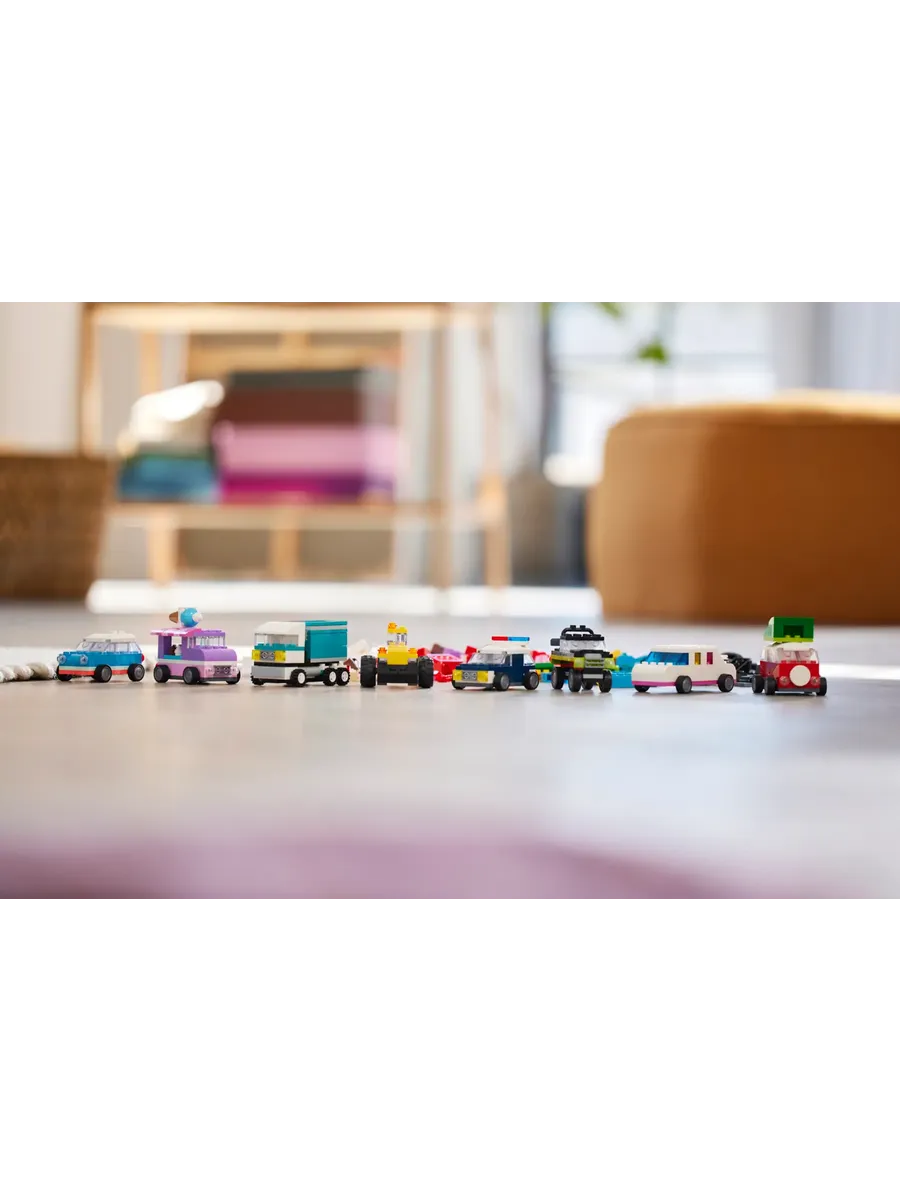 С помощью 900 строительных кубиков, специальных деталей и 52 колёс, а также простых инструкций дети смогут собрать полицейскую машину, фургон для мороженого, квадроцикл, фронтальный погрузчик, грузовик, универсал, внедорожник и игрушечный лимузин. Затем, используя идеи для различных конструкций, крутые детали и красочные украшения, дети смогут по-новому преобразить свои транспортные средства. По мере развития навыков творческого конструирования дети смогут создавать собственные проекты. В набор включены 10 вдохновляющих идей, которые помогут начать увлекательное конструирование. Инструкции также доступны в приложении LEGO Builder, которое позволяет детям увеличивать масштаб, поворачивать модели и отслеживать прогресс.