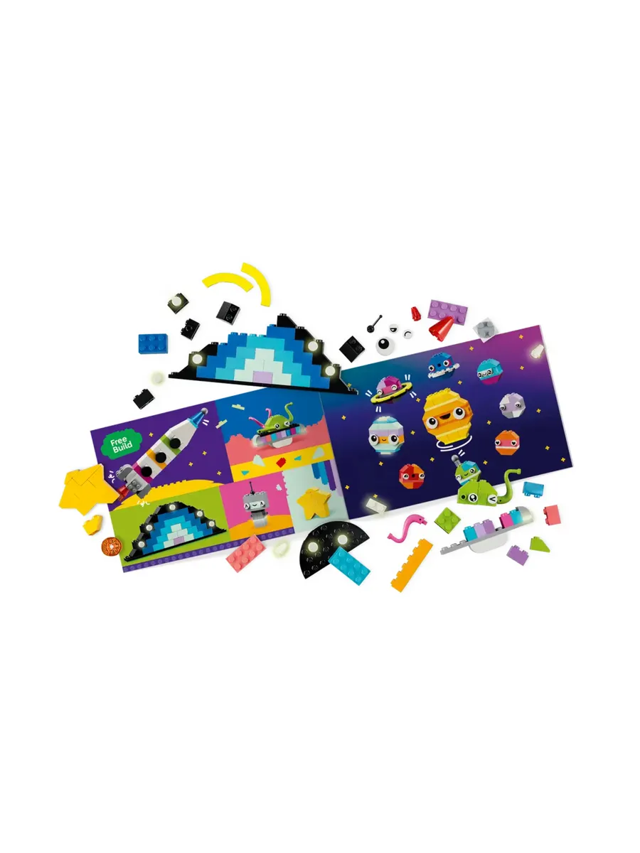 Дети собирают разноцветные кубики, чтобы построить игрушечную ракету, инопланетянина, астронавта и мини-солнечную систему, включающую Марс, Землю, Солнце и Сатурн с его кольцами. Затем космические модели можно персонализировать, используя альтернативные цвета, формы, глаза, выражения лиц и подставку, которая позволяет модели вращаться. Есть даже светящиеся в темноте кубики для видимости в ночное время. Космическое творчество продолжается с помощью альтернативных вариантов сборки, включая полноценную солнечную систему из 8 планет.