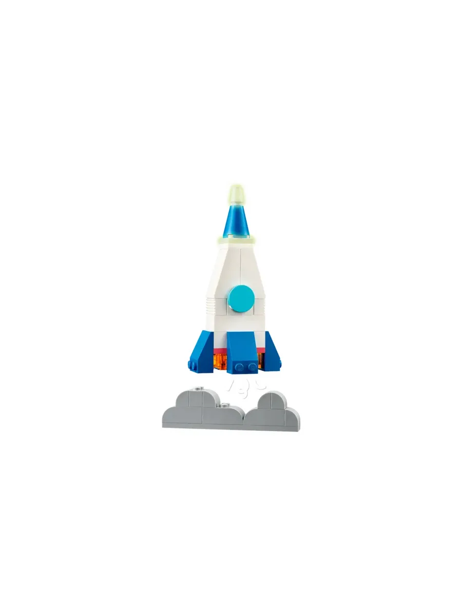 Набор для сборки из 450 деталей — высота космической ракеты составляет более 5 дюймов (12 см), хотя модели могут увеличиваться или уменьшаться в размере по мере того, как ваш маленький строитель будет вносить изменения в конструкцию.