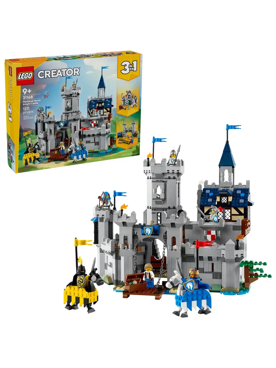 3 варианта средневековых игрушечных построек в 1 коробке. Игровой набор LEGO Creator «Средневековый конный рыцарь в замке» 3 в 1 позволяет детям собирать и перестраивать 3 разные детализированные модели из одних и тех же кубиков.