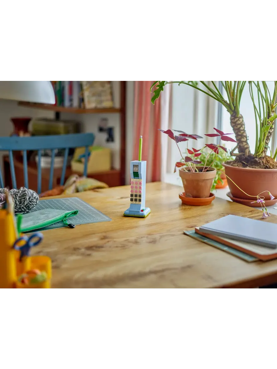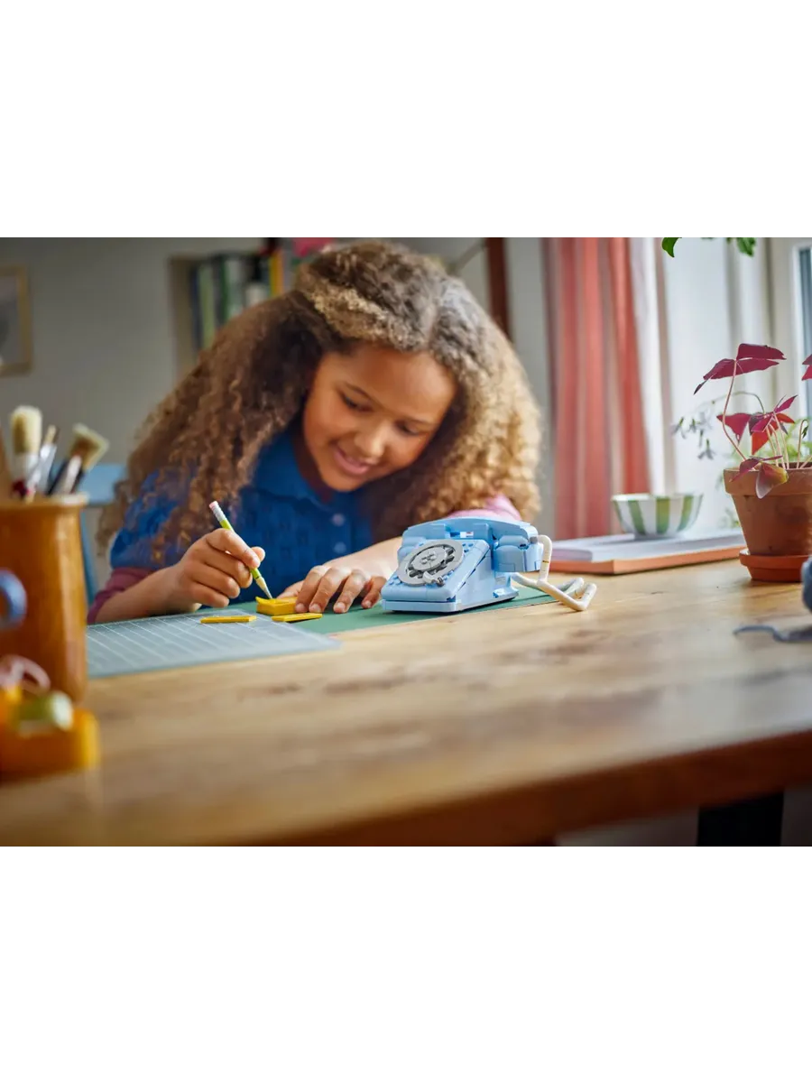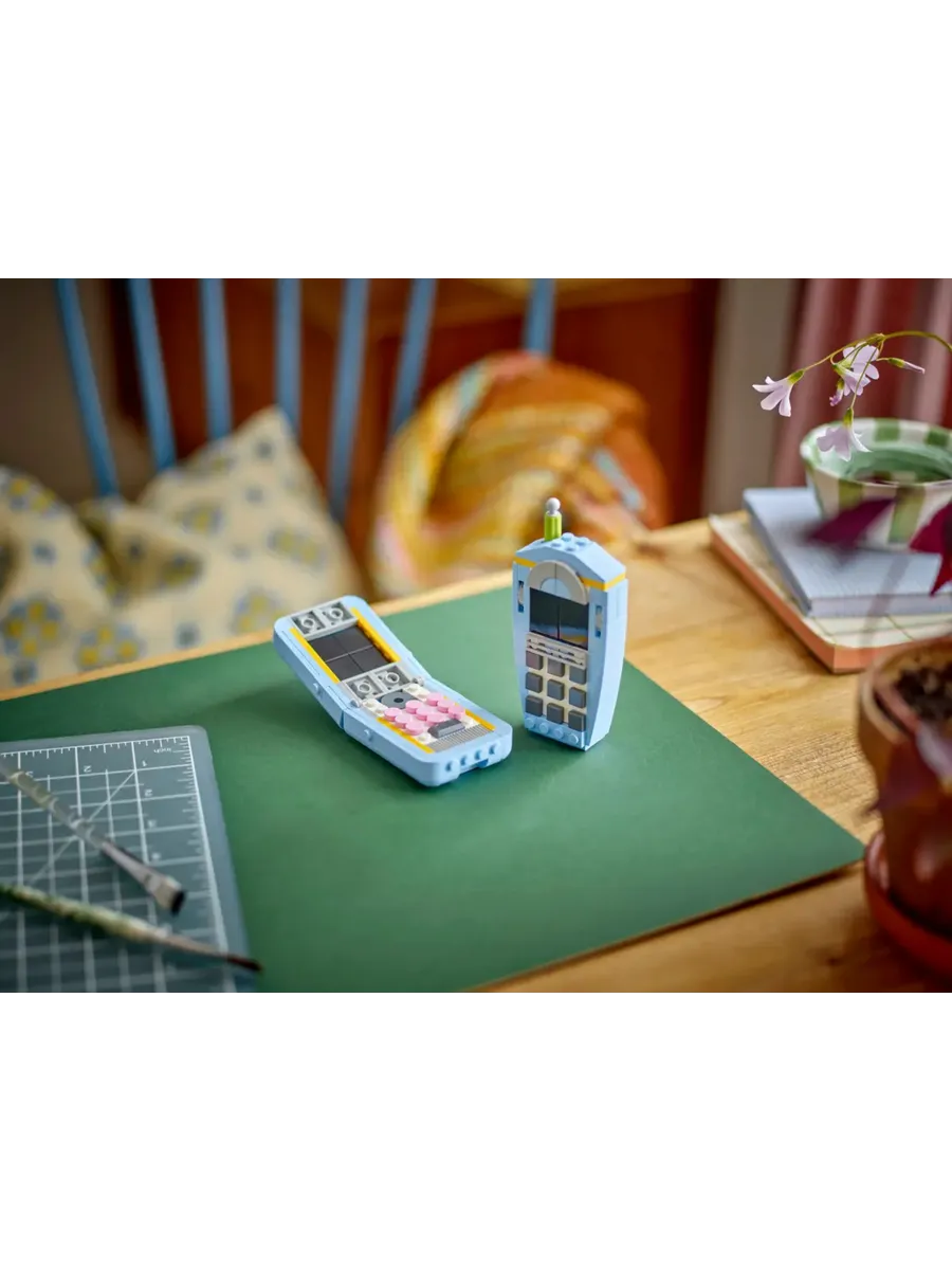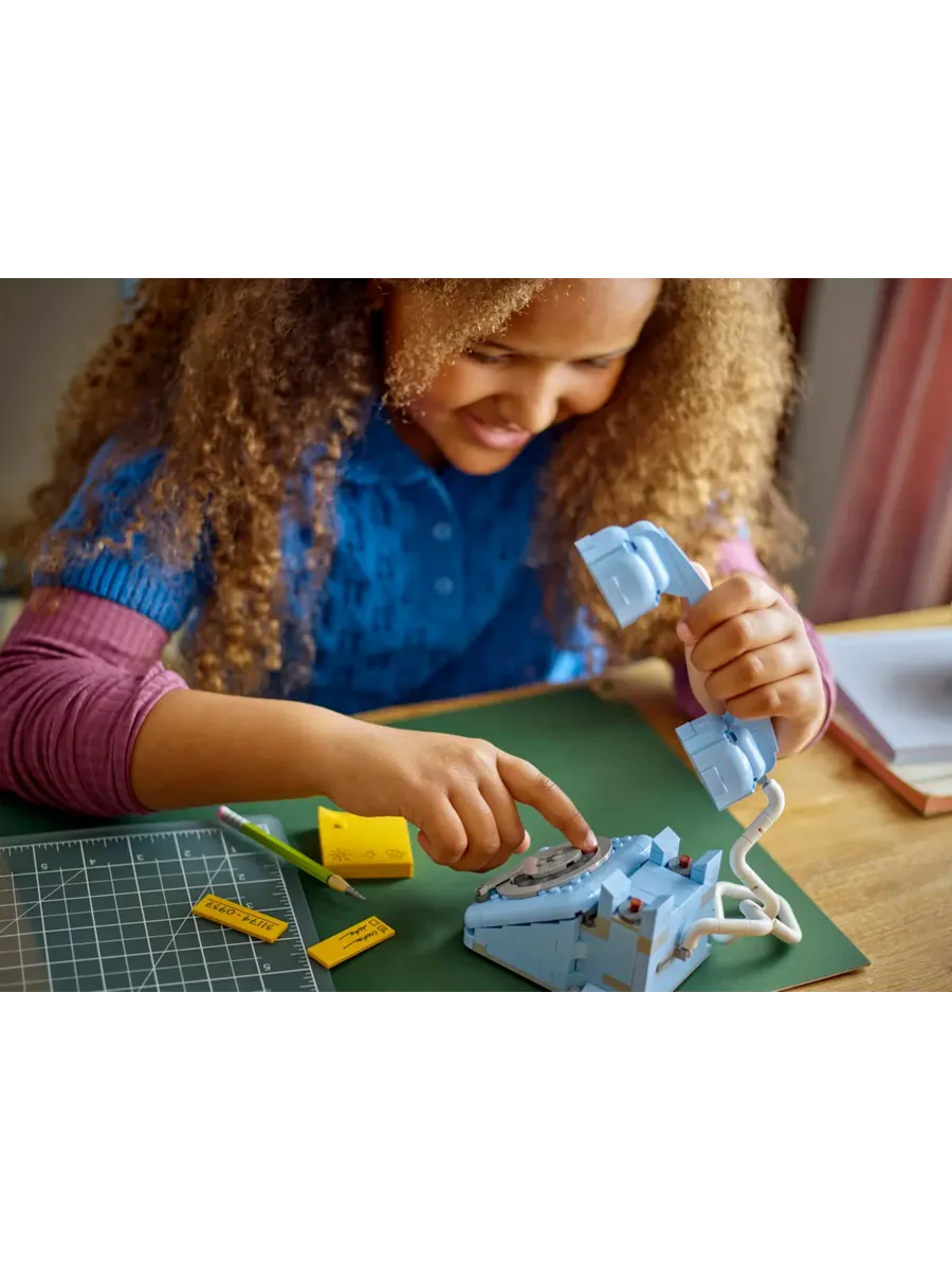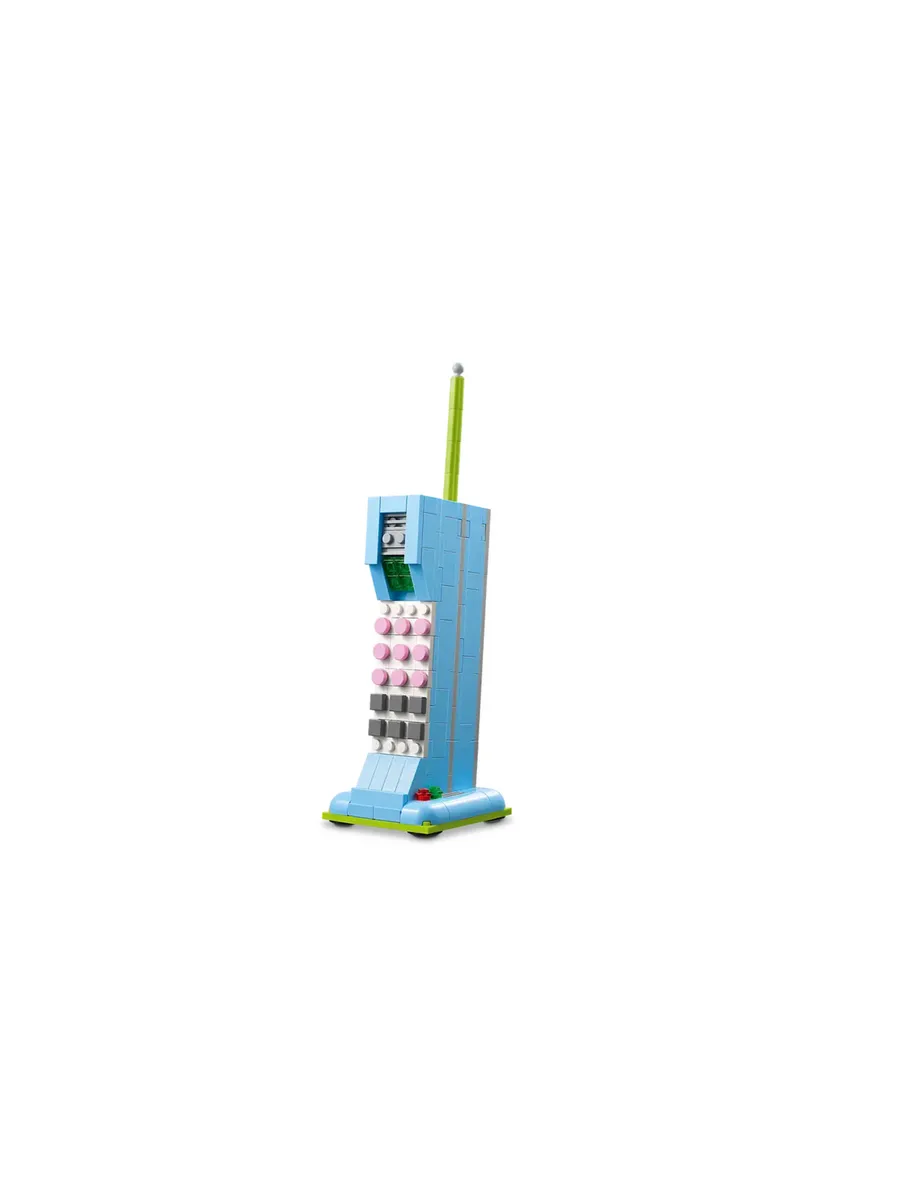 Взрослые, испытывающие ностальгию, и творческие дети от 8 лет могут перенестись в прошлое с помощью этого стильного набора LEGO Creator «Ретро-телефон 3 в 1» (31174). В него входит крутая игрушка-телефон в стиле ретро 1960-х годов с поднимающейся трубкой, гибким шнуром, поворотным диском и пружиной, которая срабатывает, когда звонящий кладёт трубку. В набор для декора в стиле ретро также входит карандаш из кирпичиков и настраиваемый блокнот с тремя плитками с разными надписями на выбор. Этот впечатляющий набор LEGO предлагает 3 варианта сборки из одного и того же набора деталей: игрушечный телефон в стиле ретро 1960-х годов, игрушечный телефон 1980-х годов, стоящий на зарядной базе, или 2 крутых телефона 2000-х годов. Наборы LEGO Creator 3 в 1 — отличный подарок для детей. В каждой коробке есть 3 варианта сборки. Модели нельзя собирать одновременно. Набор состоит из 383 деталей. Конструктор LEGO Creator «Ретро-телефон 3 в 1» позволяет детям от 8 лет собирать и перестраивать 3 разные модели в стиле ретро из одних и тех же деталей.