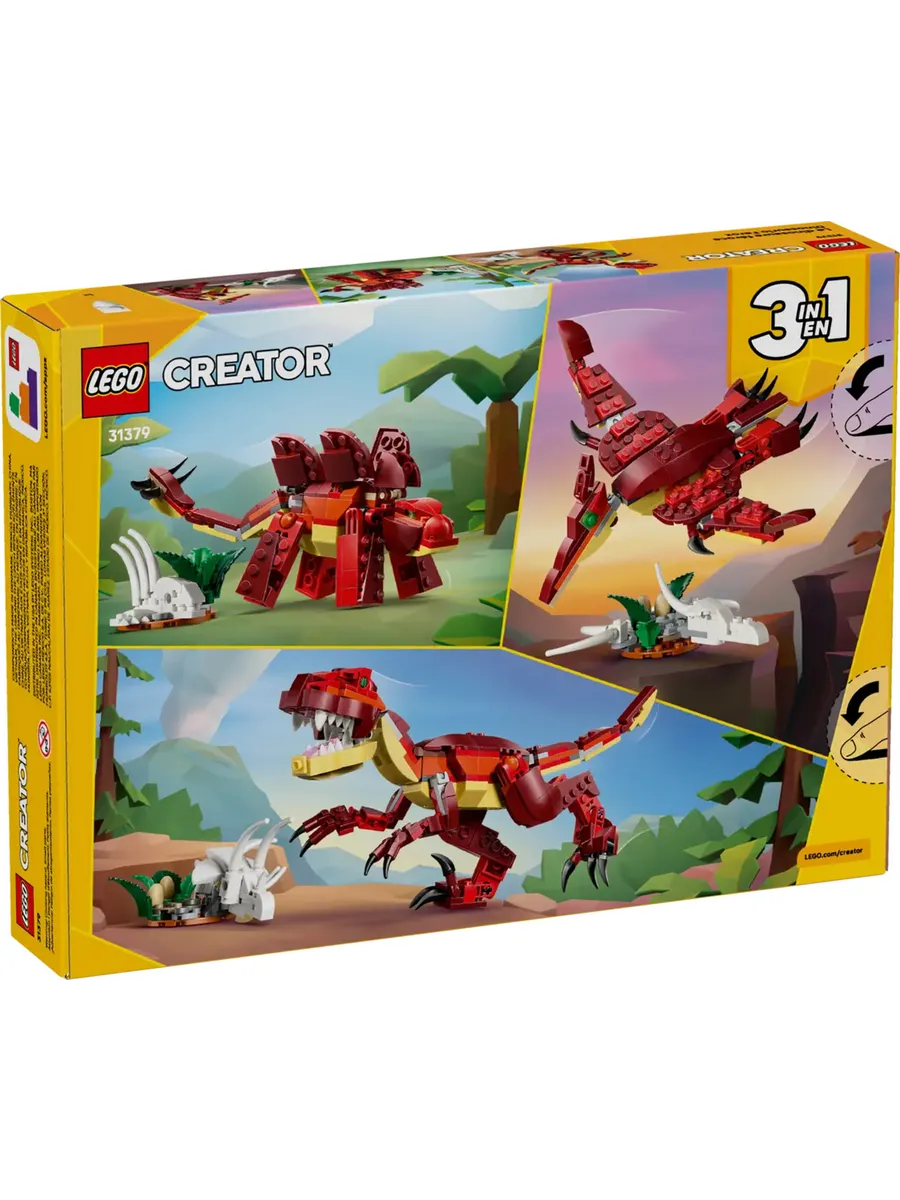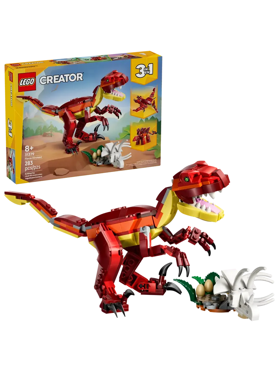 Этот конструктор LEGO Creator 3 в 1 «Свирепый динозавр» (31379) подарит детям от 8 лет всё необходимое для бесконечных доисторических приключений. Эта крутая и детализированная игрушка-динозавр предлагает 3 варианта сборки из одного и того же набора кубиков.