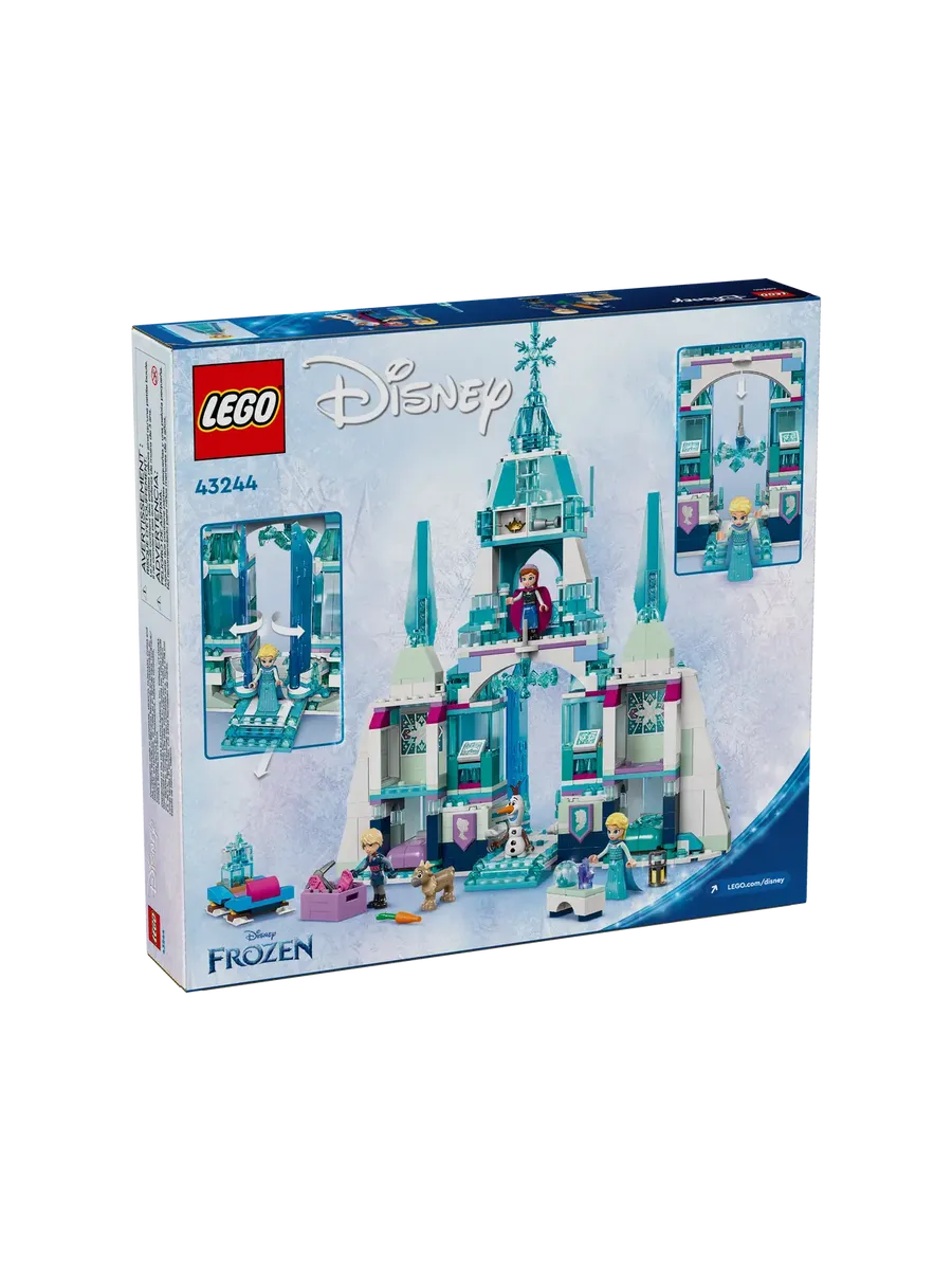 Поклонники «Холодного сердца» и дети от 6 лет могут погрузиться в бесконечную игру с этой подробной конструктивной игрушкой LEGO ǀ Disney «Ледяной дворец Эльзы» (43244). Внутри коробки вы найдёте 3-уровневый ледяной замок с подвижным полом, который открывает волшебные двери, падающую люстру, 2 спальни, кабинет Эльзы с письменным столом, где она может исследовать ледяные кристаллы, балкон, конструктивные сани и несколько сюжетных элементов. В этот детский конструктор также входят мини-куклы Эльзы, Анны и Кристоффа LEGO ǀ Disney, а также снеговик Олаф LEGO ǀ Disney и фигурка северного оленя LEGO ǀ Disney.