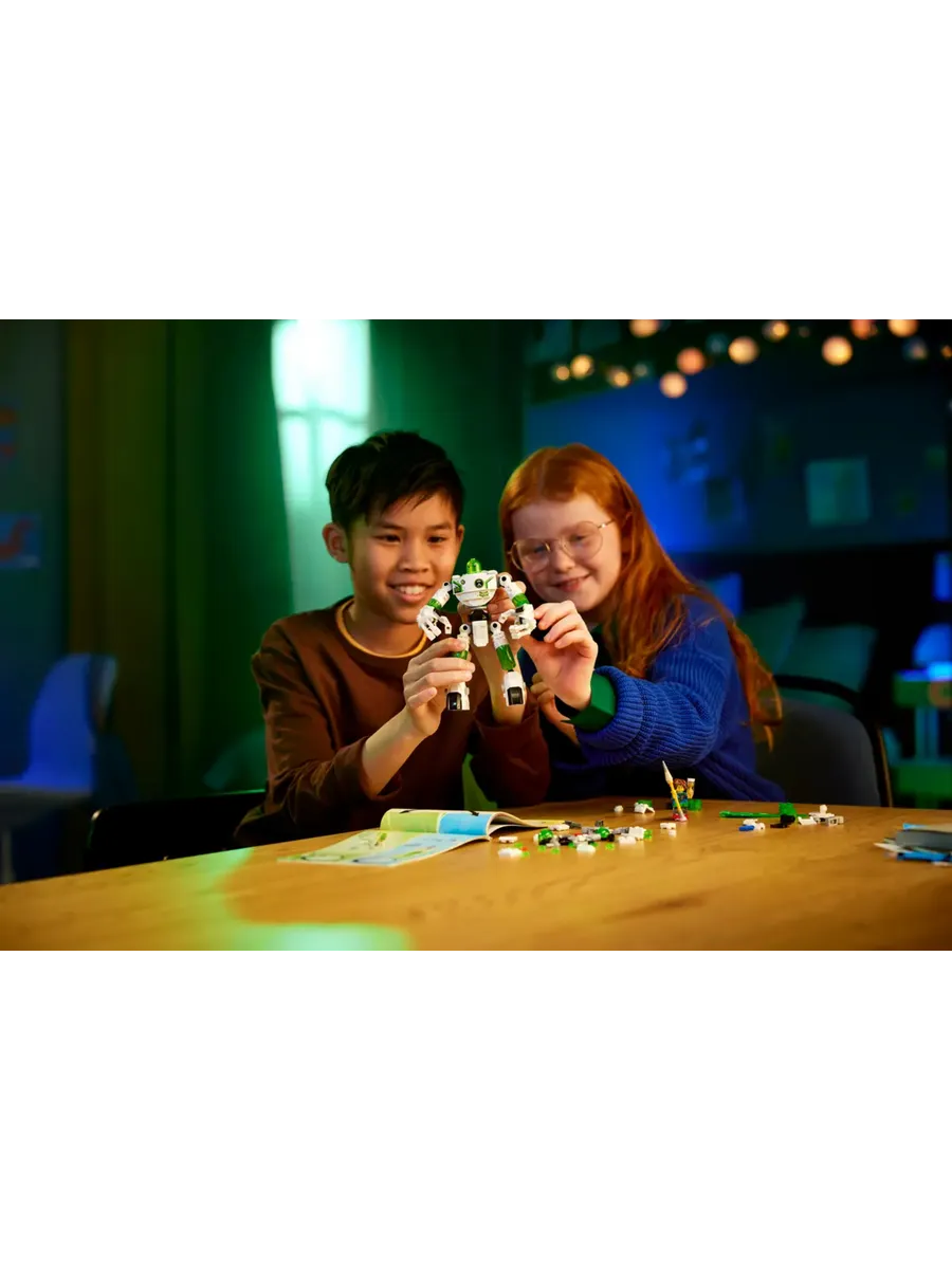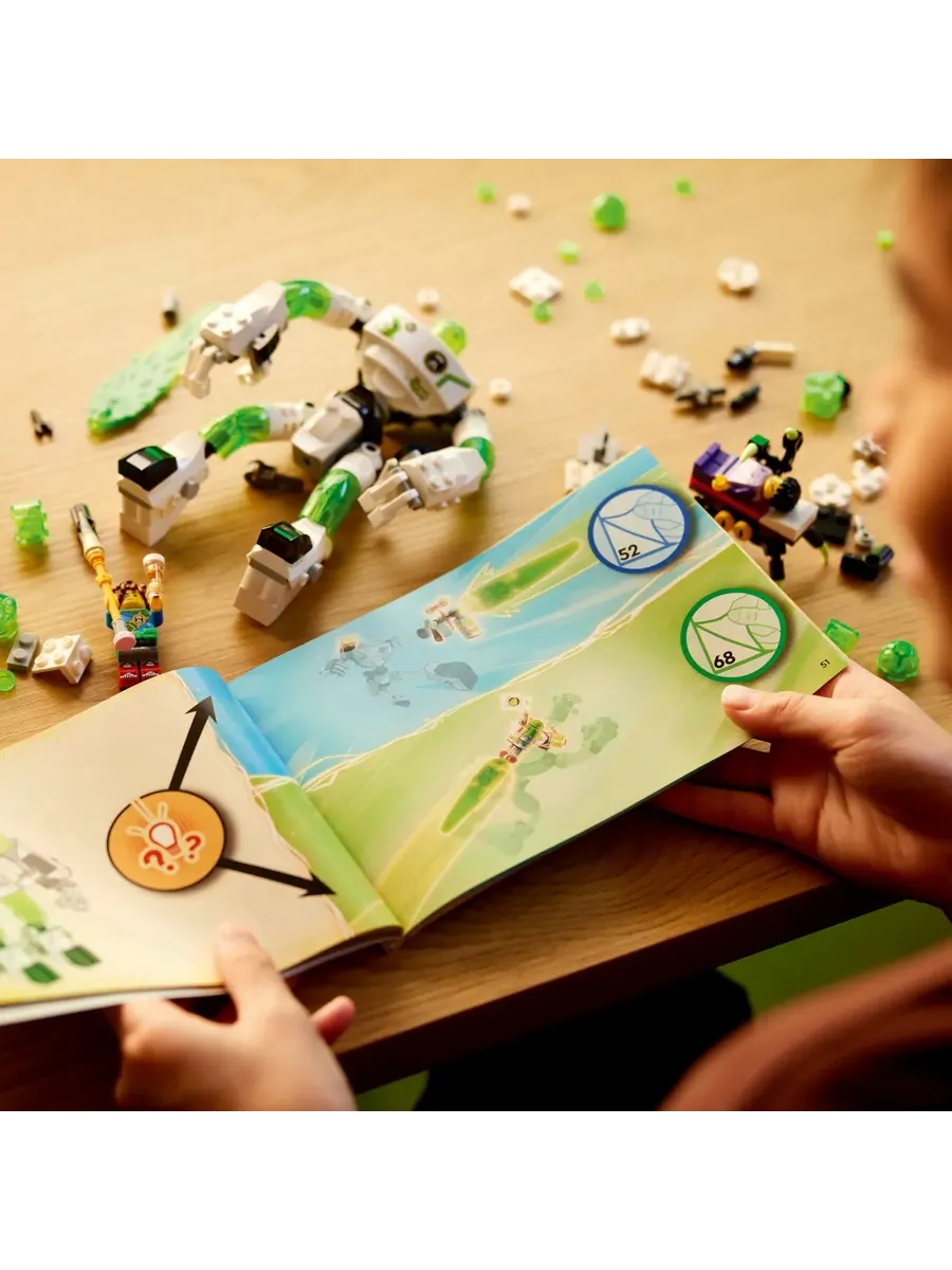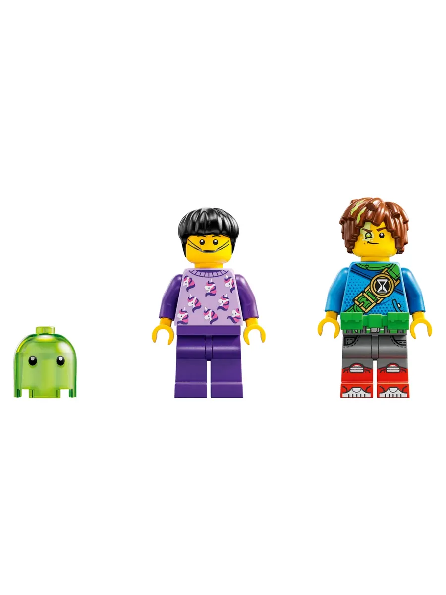 В набор входят детализированные минифигурки Матео и Джейдена. Среди их аксессуаров — ремень, карандаш и песочные часы, которые важны для их пеОживите Z-Blob — дети могут поиграть в ролевые игры с конструктором LEGO DREAMZzz «Матео и робот Z-Blob» (71454), основанным на сюжете телешоу.