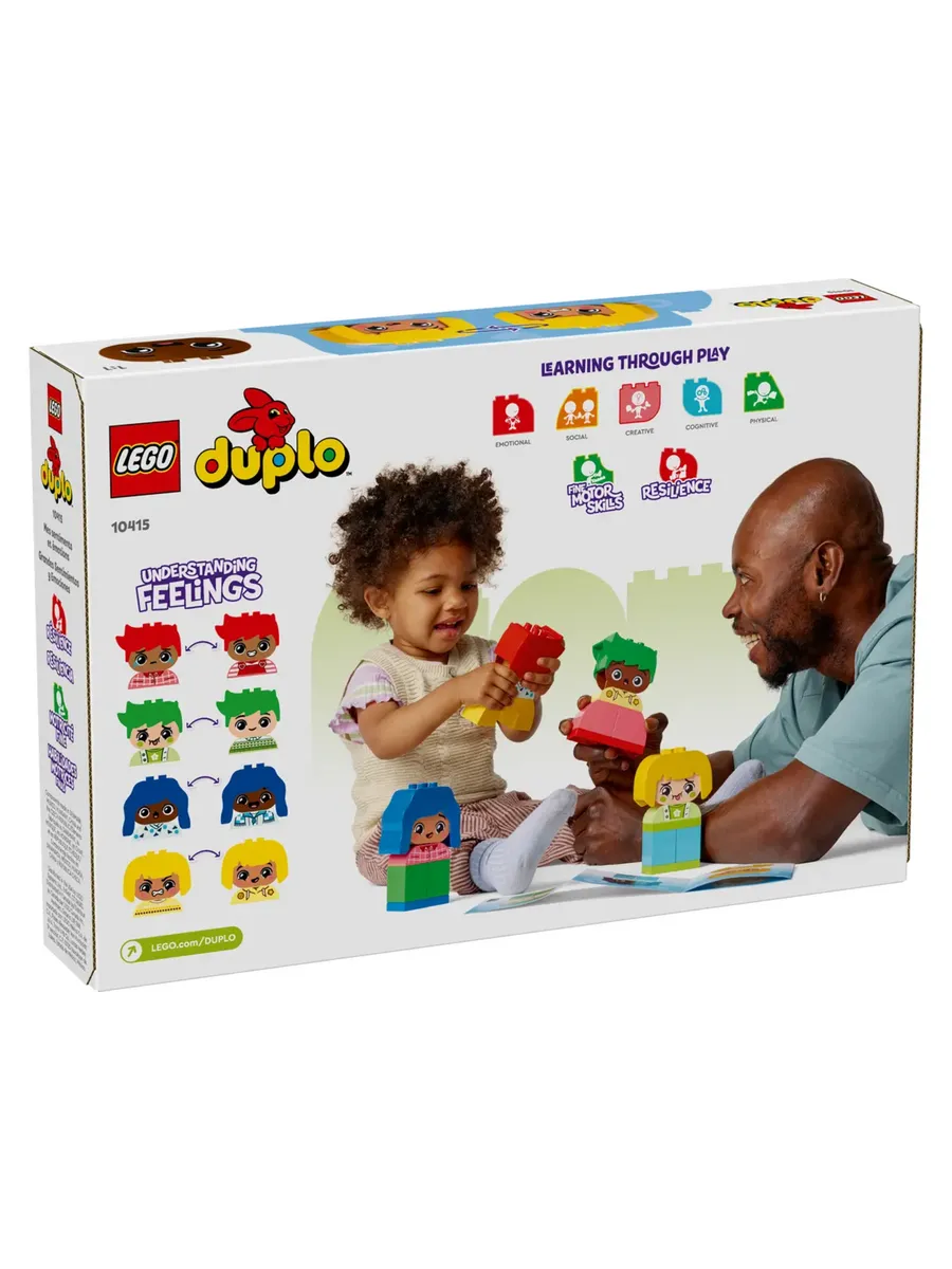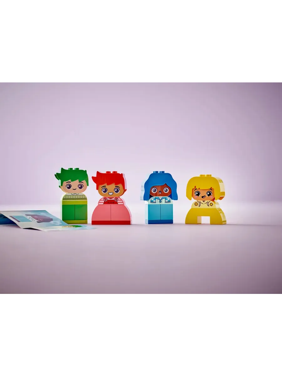 Помогите малышам изучить свои эмоциональные реакции с помощью познавательной обучающей игрушки LEGO DUPLO «Мои первые большие чувства и эмоции» (10415). В набор входят 4 разных персонажа, каждый из которых может принимать 2 разных выражения лица, поэтому дети дошкольного возраста могут менять выражение лица игрушки, чтобы передать свои чувства.