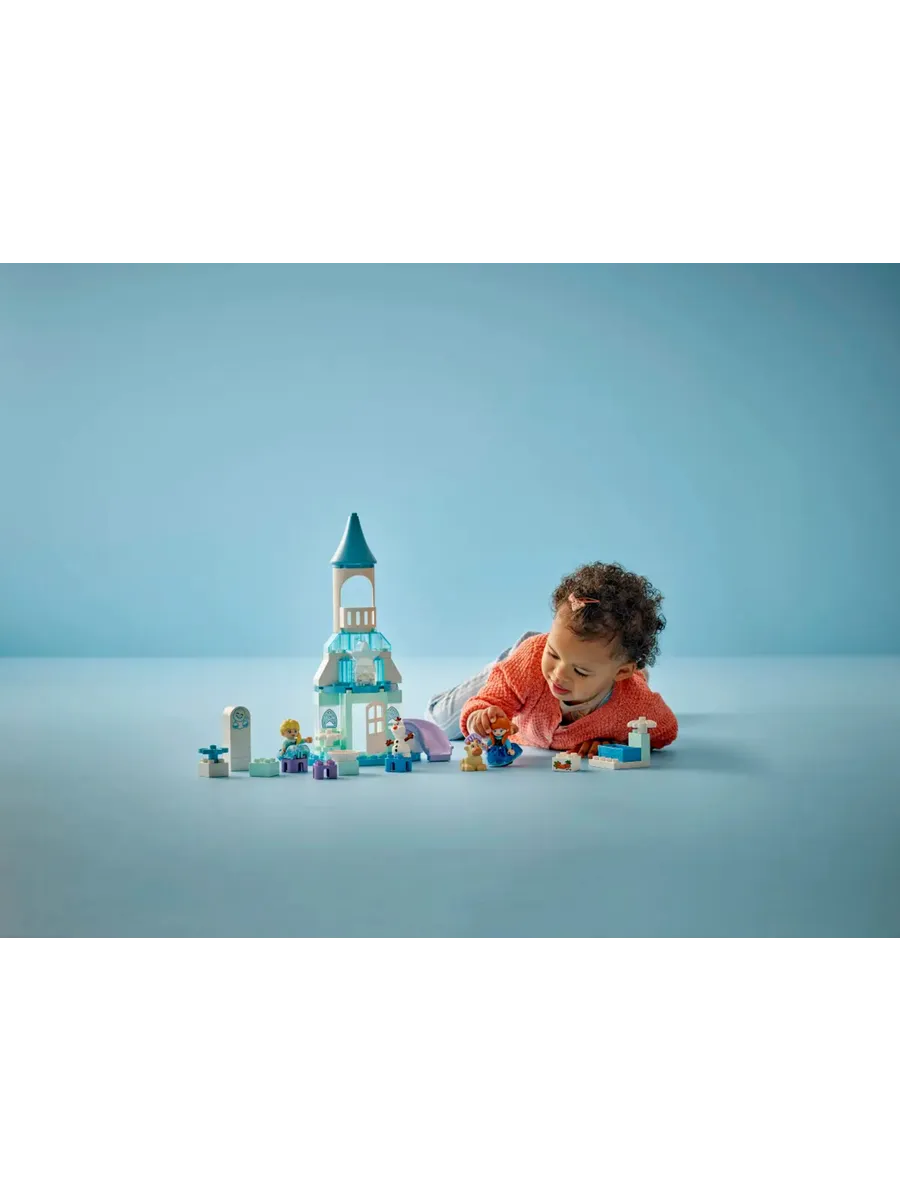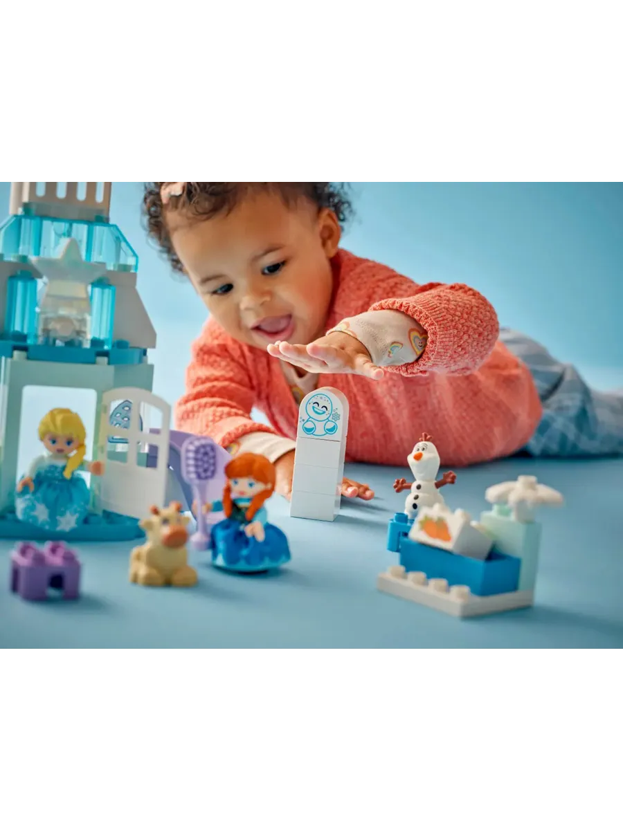 Эта развивающая игрушка-конструктор для малышей состоит из множества деталей, которые стимулируют органы чувств. Эльза и Анна одеты в юбки из тактильной ткани, есть дверца на петлях, которую малыши могут открыть, чтобы заглянуть внутрь замка из «Холодного сердца», а в набор входит разноцветный световой блок, имитирующий северное сияние. Состоит из 54 деталей.
