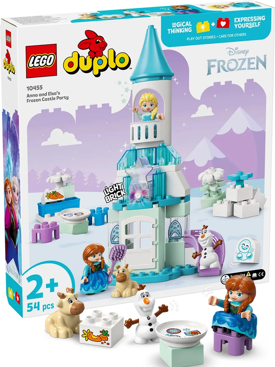 Погрузитесь в мир творческих игр вместе с конструктором LEGO DUPLO Disney «Вечеринка в замке Анны и Эльзы из «Холодного сердца» (10455). В набор входят персонажи LEGO DUPLO Disney: Эльза, Анна, Зефирчик, малыш Свен и Олаф. С их помощью дошкольники смогут бесконечно играть в ролевые игры, представляя жизнь в замке и заботясь о малыше Свене.