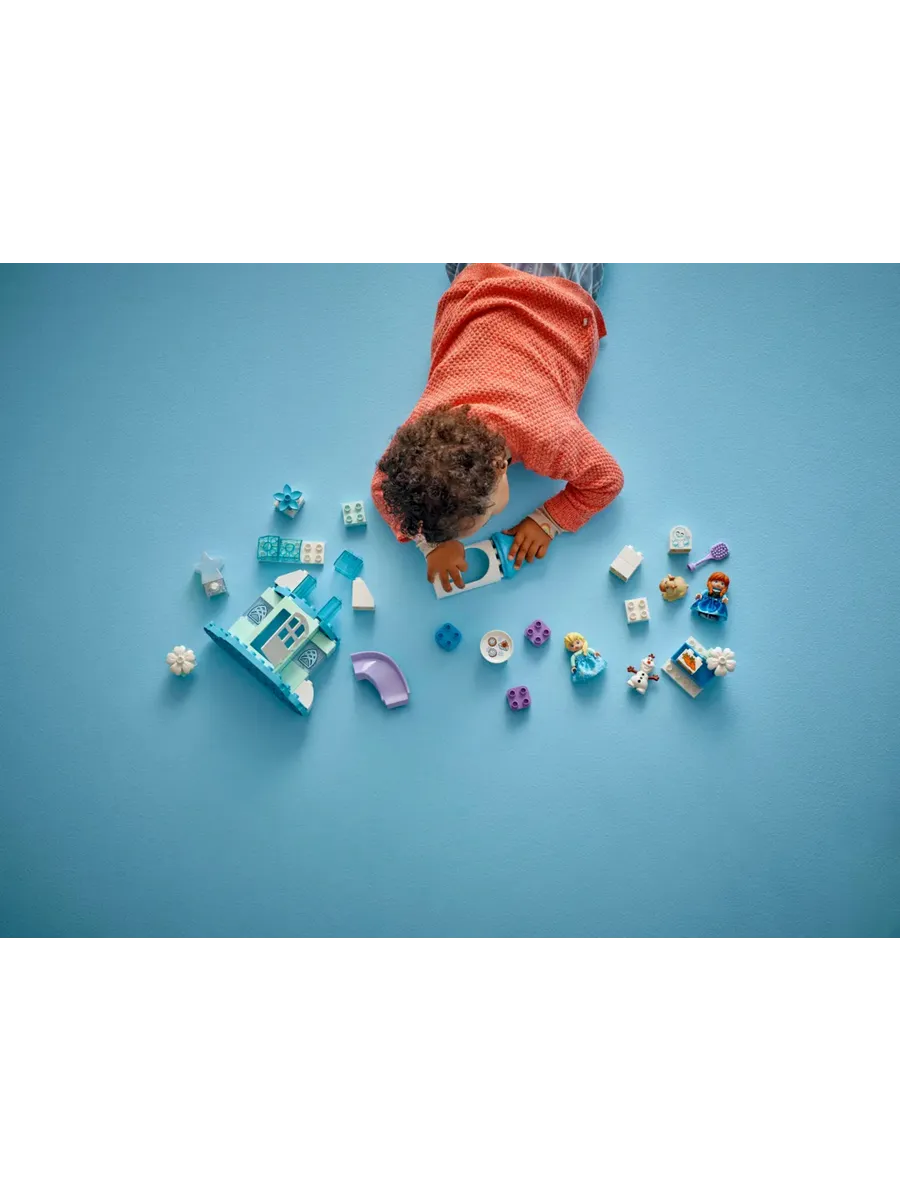 Особенности набора «Холодное сердце» — в набор входят 5 персонажей LEGO DUPLO Disney: Эльза, Анна, Зефирчик, Малыш Свен и Олаф, а также такие аксессуары, как горка, кормушка и щётка
