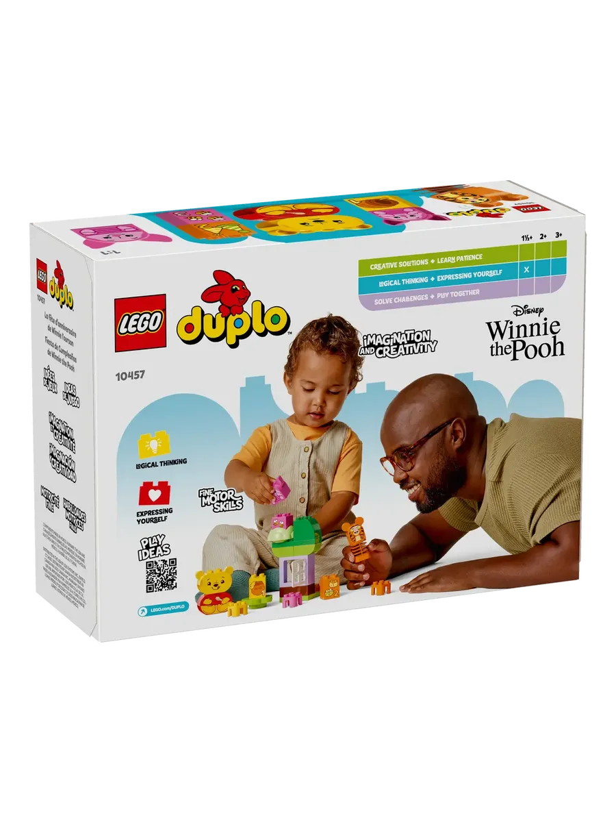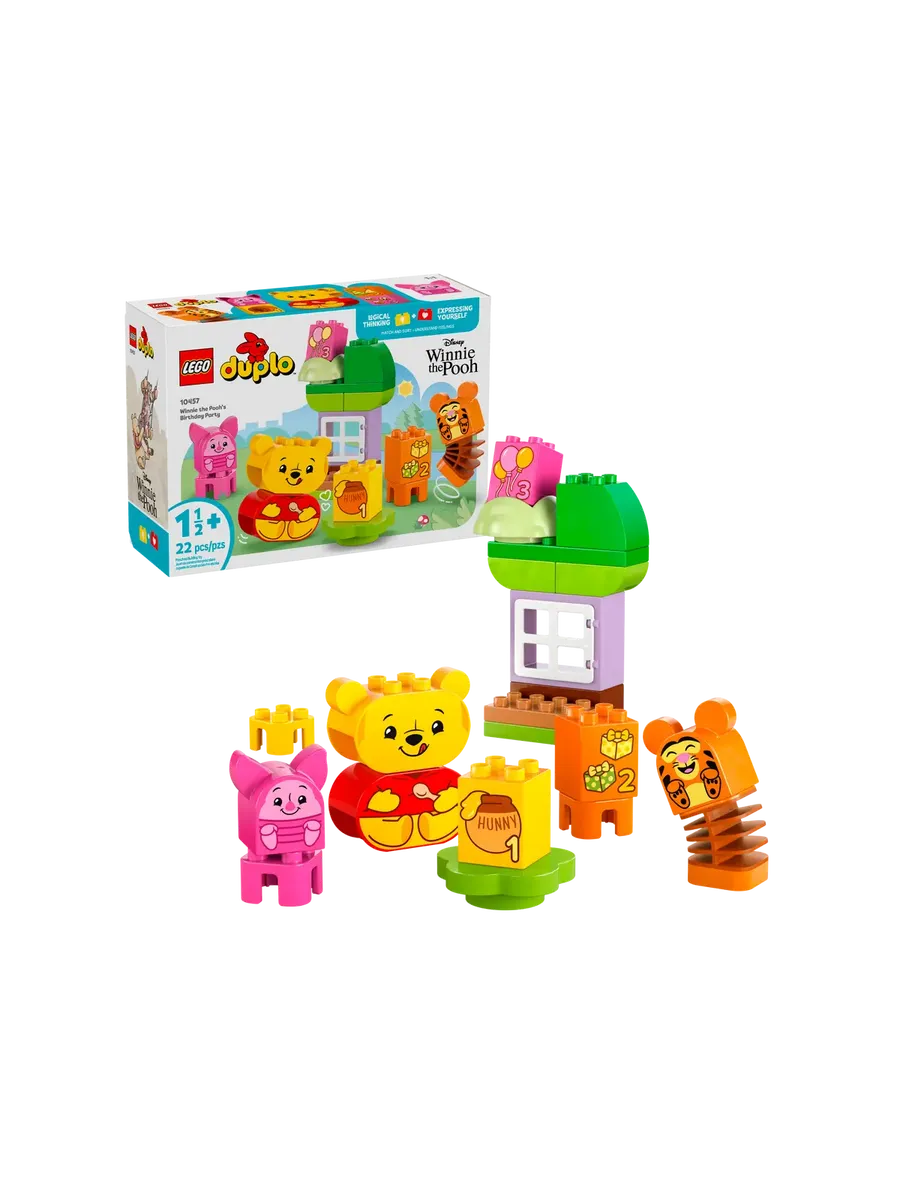 Родители и малыши наслаждаются творческими играми и учатся в процессе игры с набором LEGO DUPLO «День рождения Винни-Пуха» (10457). Эта красочная развивающая игрушка-конструктор помогает малышам в возрасте от 18 месяцев и старше развивать навыки, получая удовольствие от творческих игр.
