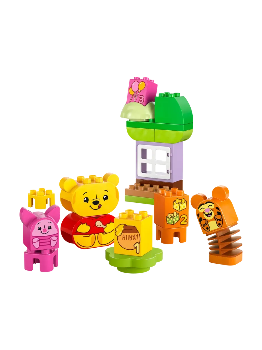 Забавная развивающая строительная игрушка — малыши с удовольствием играют и тренируют навыки, необходимые в дошкольном возрасте, с набором LEGO DUPLO ǀ «День рождения Винни-Пуха»