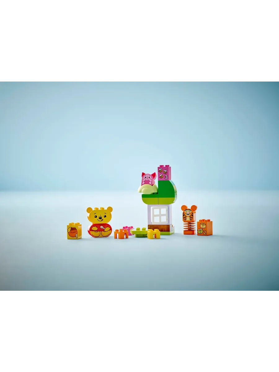 3 сборные игрушки LEGO в виде животных — в комплект входят культовые фигурки: Винни-Пух, Тигра и Пятачок, а также подарки и домик на дереве, которые вдохновят на увлекательную игру.