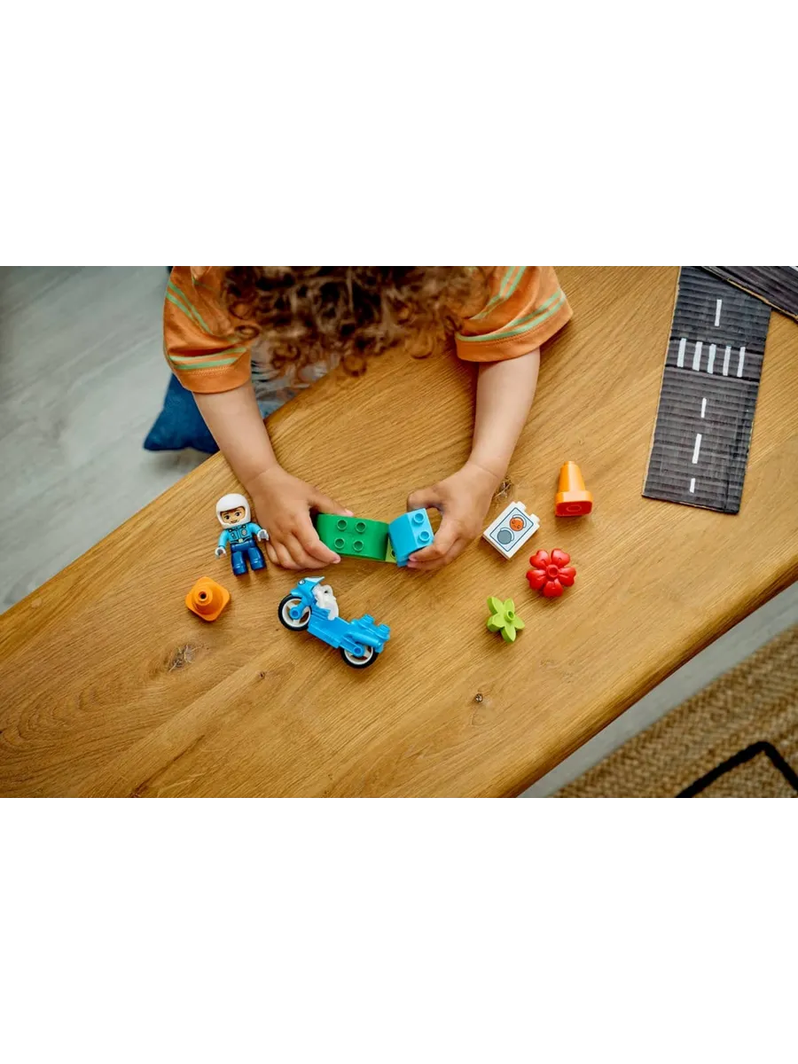 С игровым набором LEGO DUPLO Town «Синий полицейский мотоцикл» (10471) дети от 2 лет смогут весело провести время за игрой.