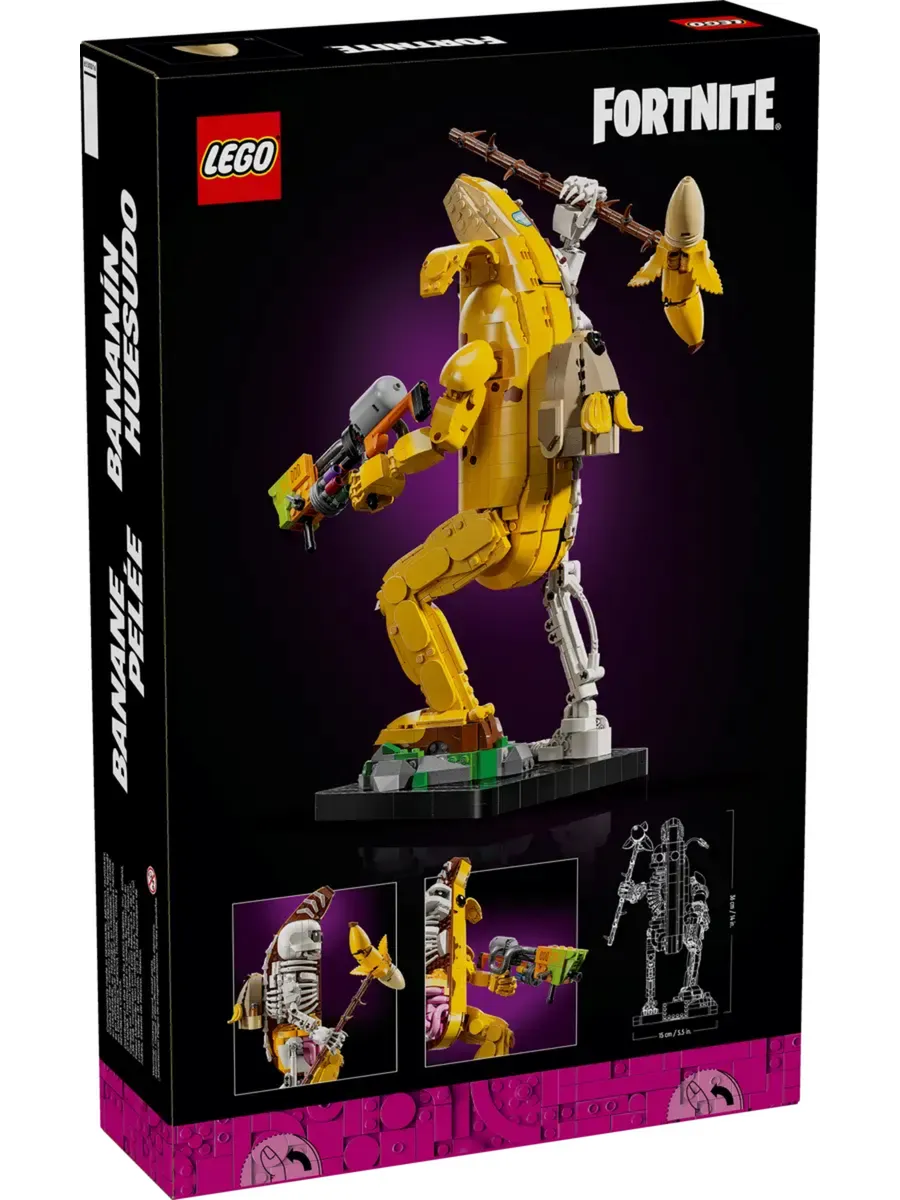 Поклонники Fortnite погрузятся в приключение за кадром, собирая кирпичную версию Пили Боуна, который наполовину банан, а наполовину скелет. Они будут в восторге от движущихся рук и запястий игровой игрушки, а также от её крутых аксессуаров, среди которых кирка Пили, краскопульт и украшение для спины в виде банана.