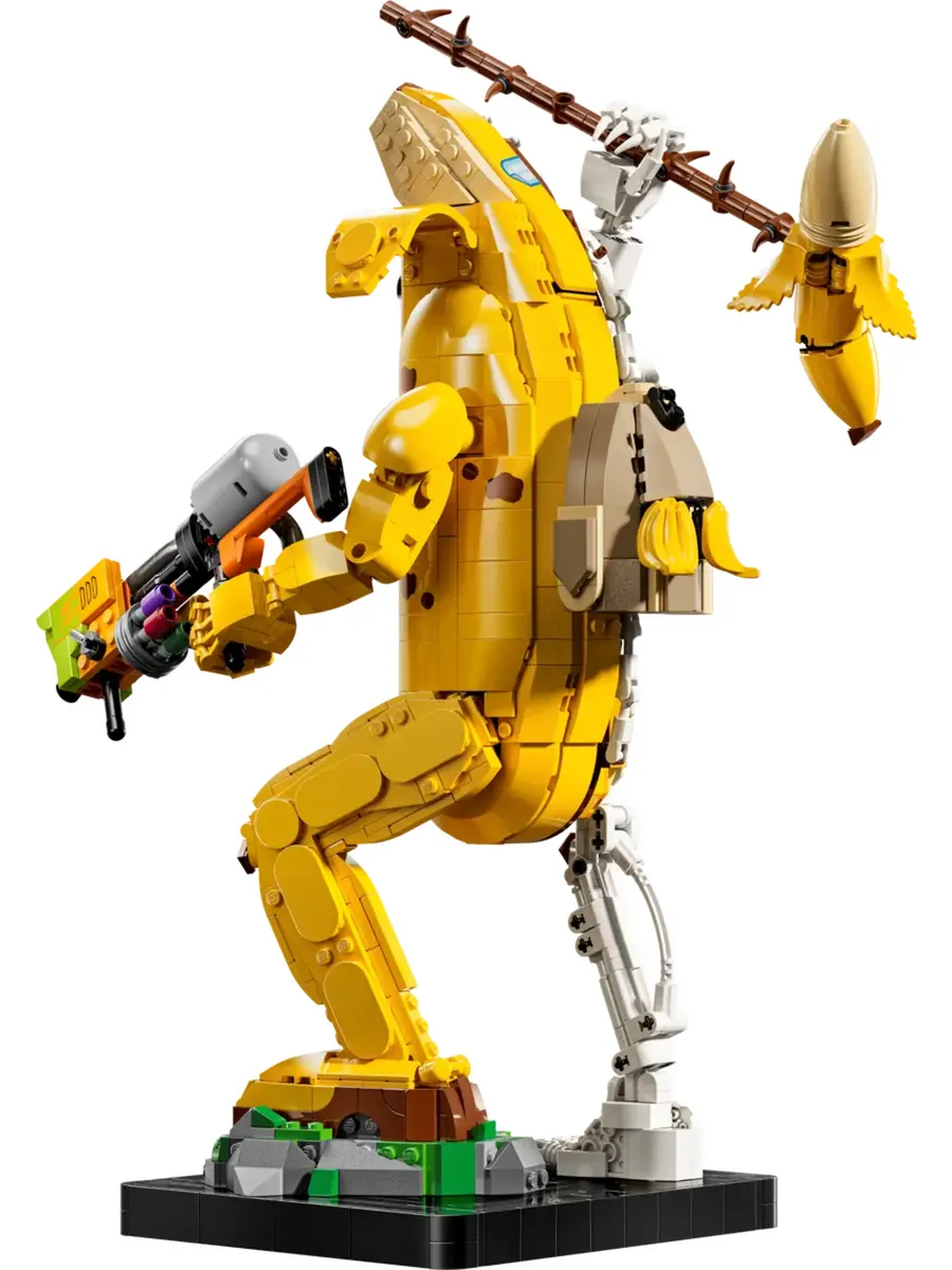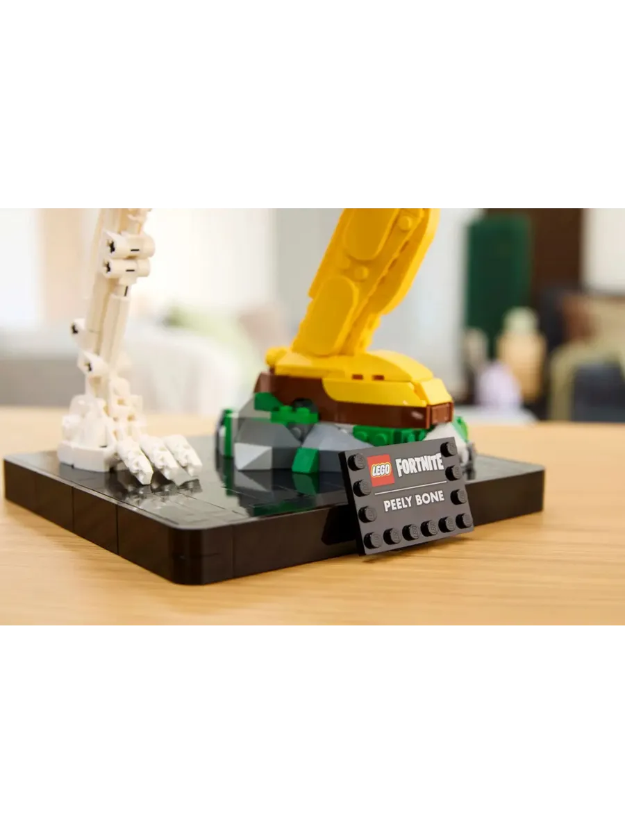 В набор также входят табличка с названием и подставка для демонстрации, чтобы геймеры могли с гордостью демонстрировать собранную фигурку банана. Эта фигурка банана — продуманный подарок для геймеров и поклонников Fortnite. Она станет частью декора для видеоигр LEGO и будет радовать вас, где бы вы её ни поставили.