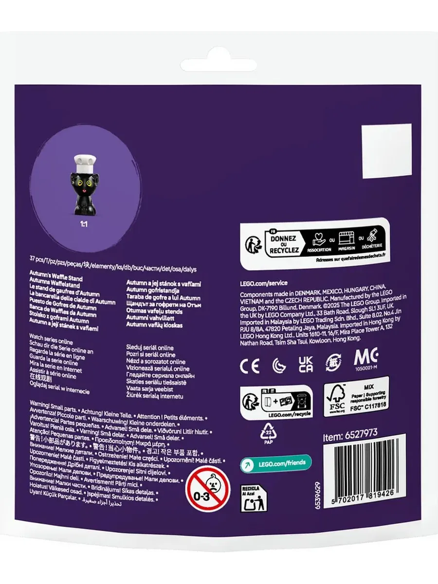 Вкусные вафли теперь доступны и в Хартлейк-Сити: Осень открывает свою вафельную лавку! Этот набор LEGO Friends включает минифигурку Осени и стенд с вафлями - с вафельницей, миской для теста и готовыми вафлями. Чёрный котёнок в поварском колпаке помогает Осени обслуживать клиентов.